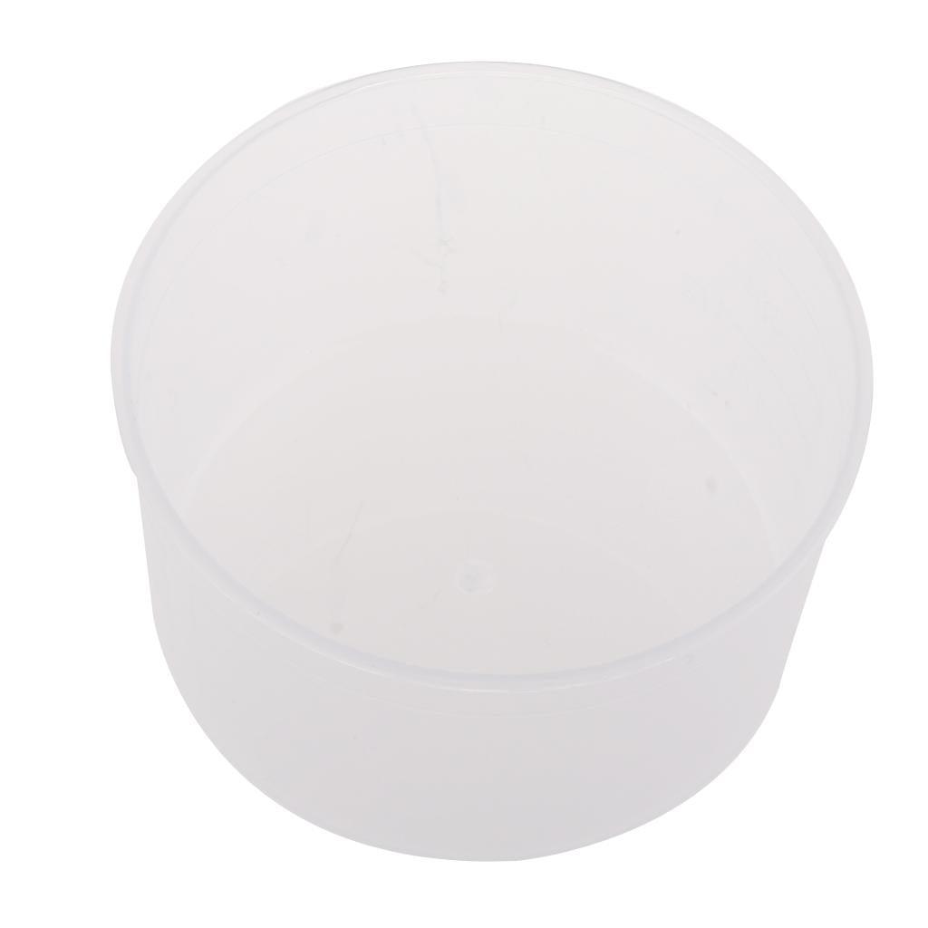 Stackable design to save space and clamshell lid and measuring cup for you to take as much as you want.