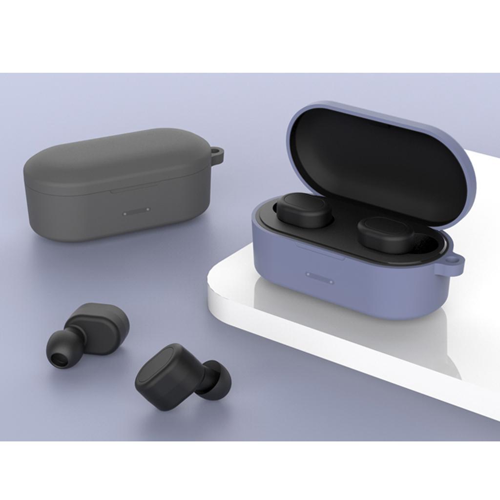 Maxbell For QCY T1S/QS2 Earbuds Cover Bluetooth Earphone Case Cover Protective Case Lavender gray+anti-lost buckle