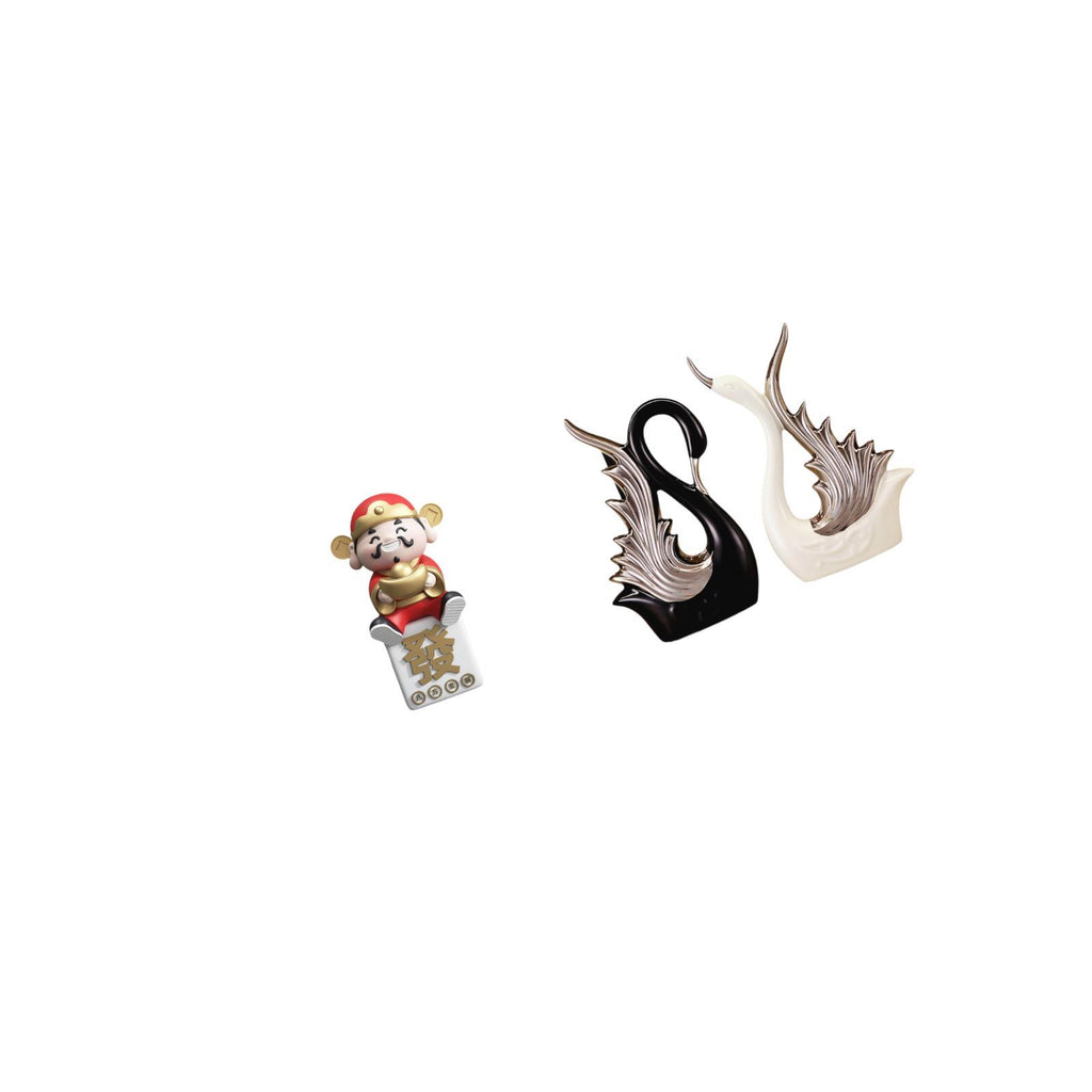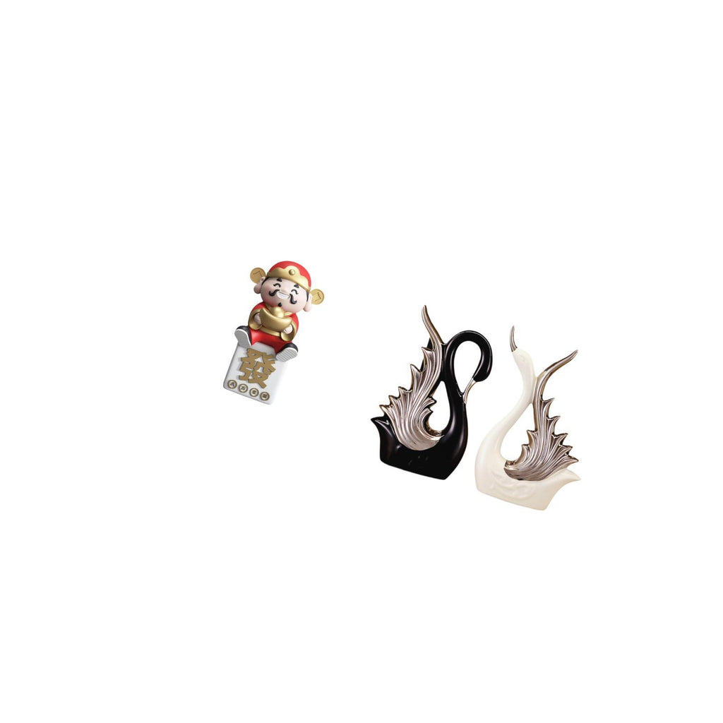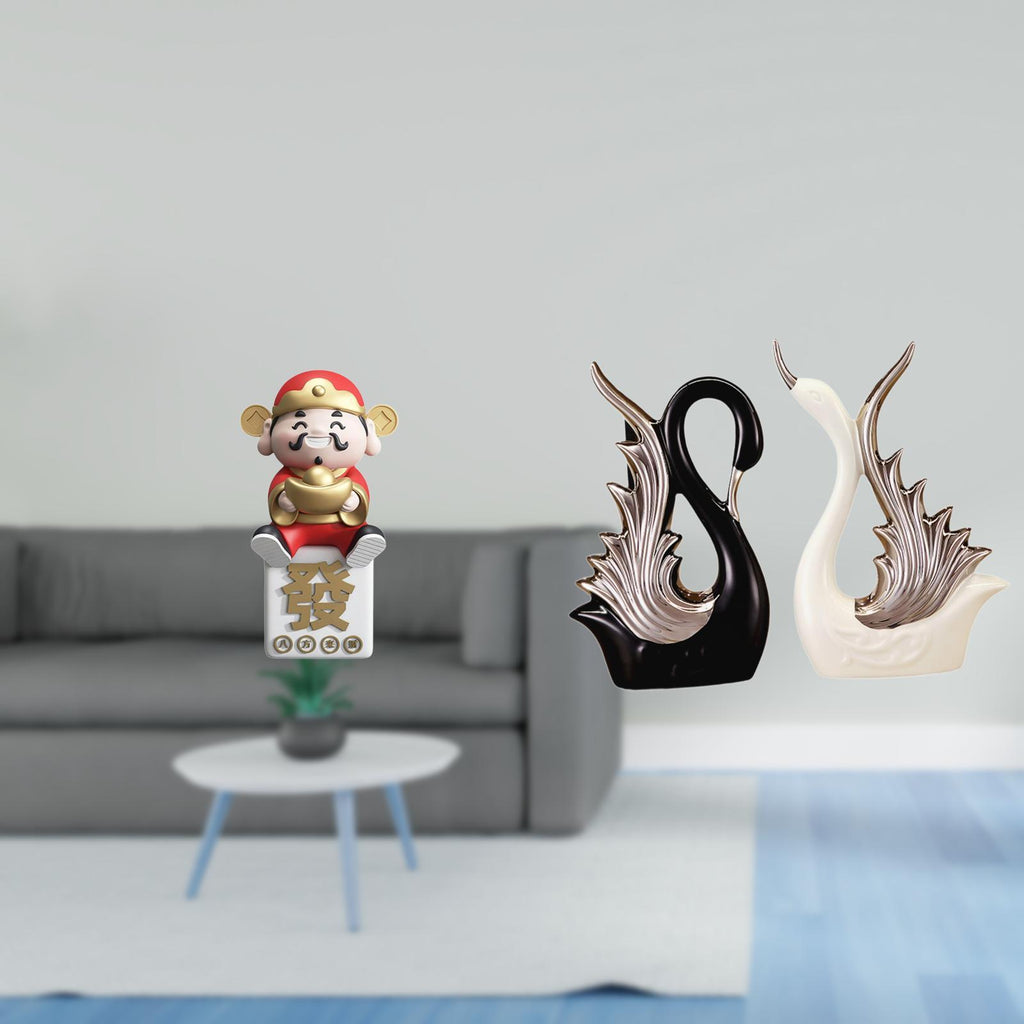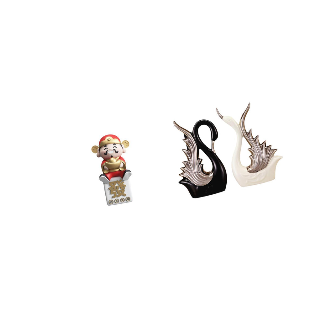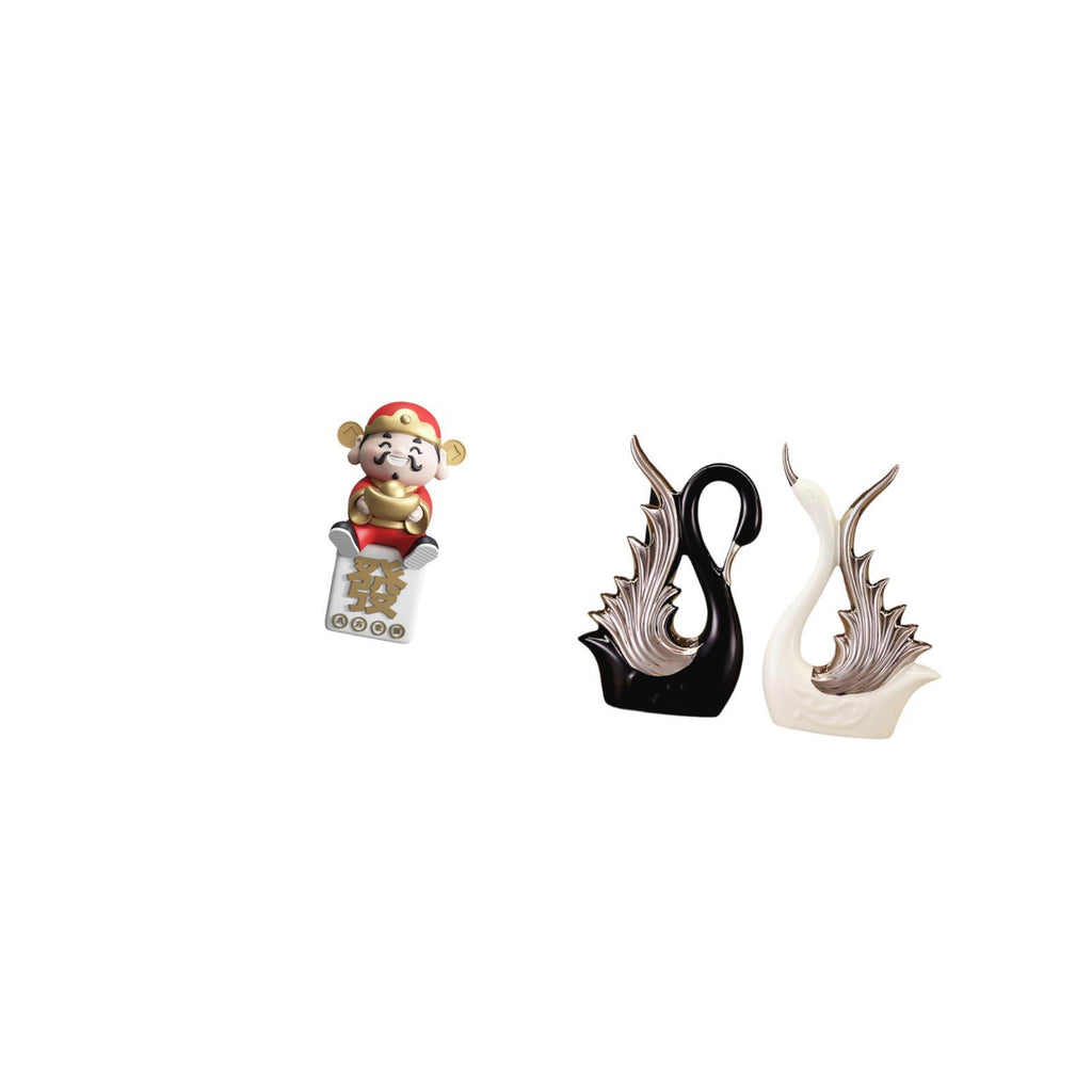 - 【Appearance】 Cartoon god of fortune figurine and swan statue have vivid details and lifelike shapes 2. 【Material】 Made of high quality resin and ceramic material smooth and sturdy 3. 【Decoration】 Suitable for home and office decoration adding fun and warmth to rooms 4. 【Occasions】 Perfect for bookshelf desk living room bedroom cabinet and party decoration 5. 【Gift】 for friends family collectors weddings birthdays and festivals