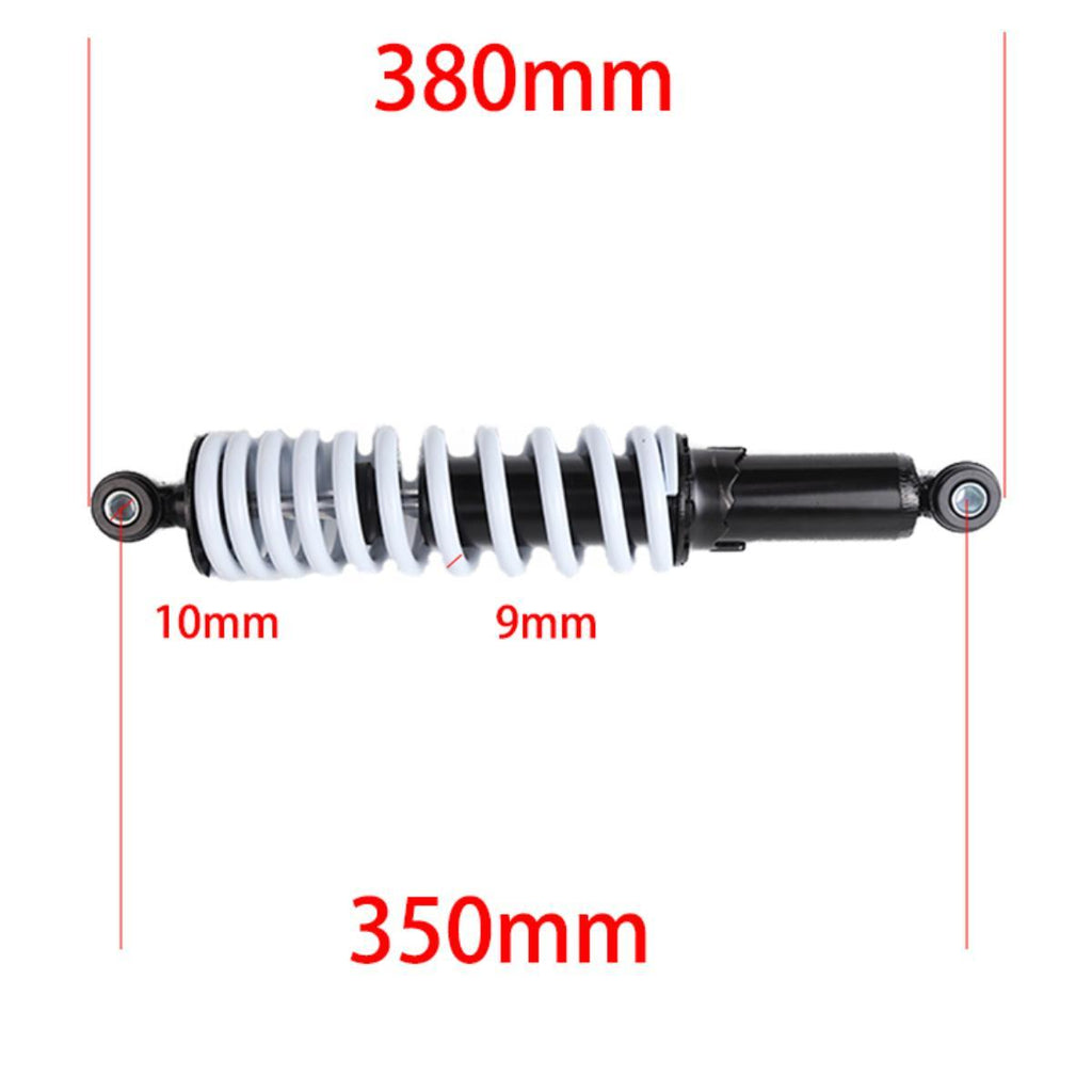 - 【Product Size】: 350mm motorcycle rear air shock absorber, total length 38cm/14.96inch, eye to eye 35cm/13.78inch, eye diameter 1cm/0.39inch, spring thickness 9mm/0.35inch.