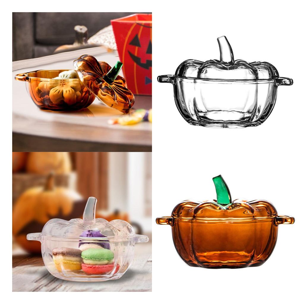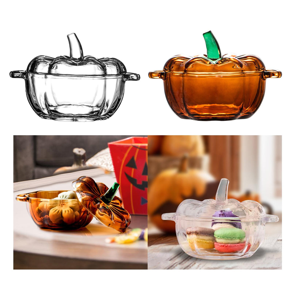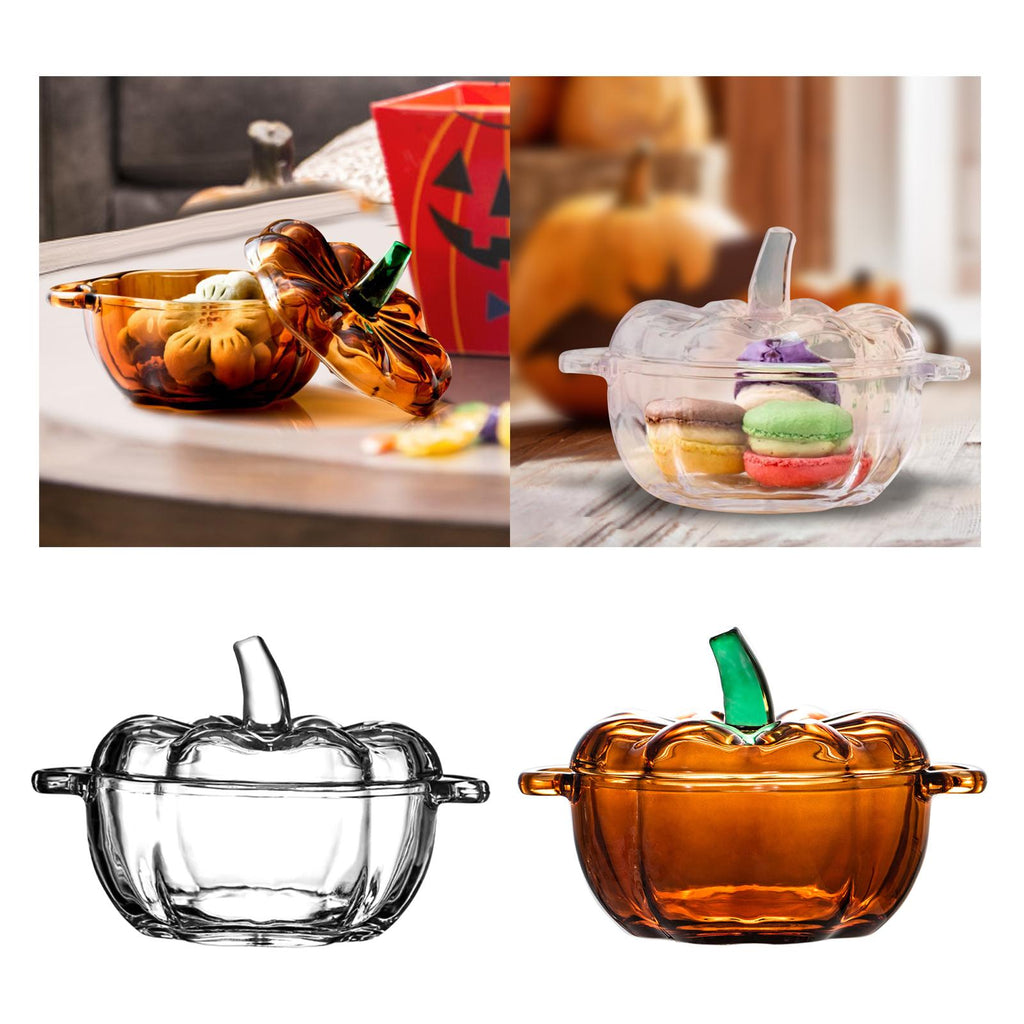 【Charming Pumpkin Shape】: This glass candy jar features a delightful pumpkin design, great for enhancing the autumn atmosphere in your home. Whether used for party decorations or as a daily living room accent, it adds a touch of elegance and charm
