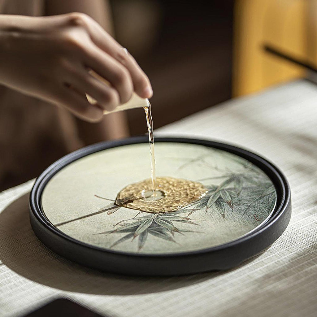 【Elegant Design】: This round tea tray features a traditional Chinese Gongfu style, addingg a touch of elegance and cultural charm to your tea ceremonies