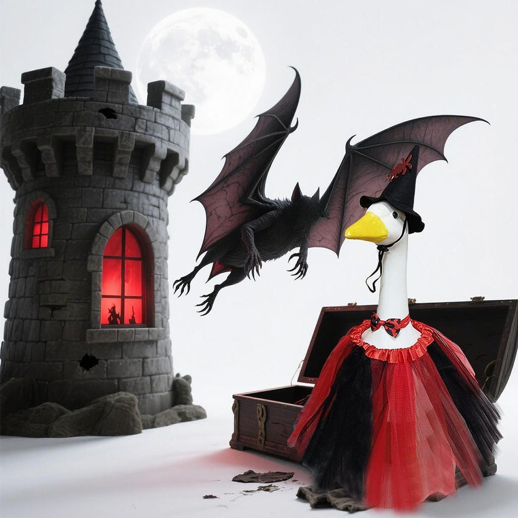 【Halloween decor】: Porch Goose Statue Clothes with horror and bat pattern that enhances the Halloween vibe