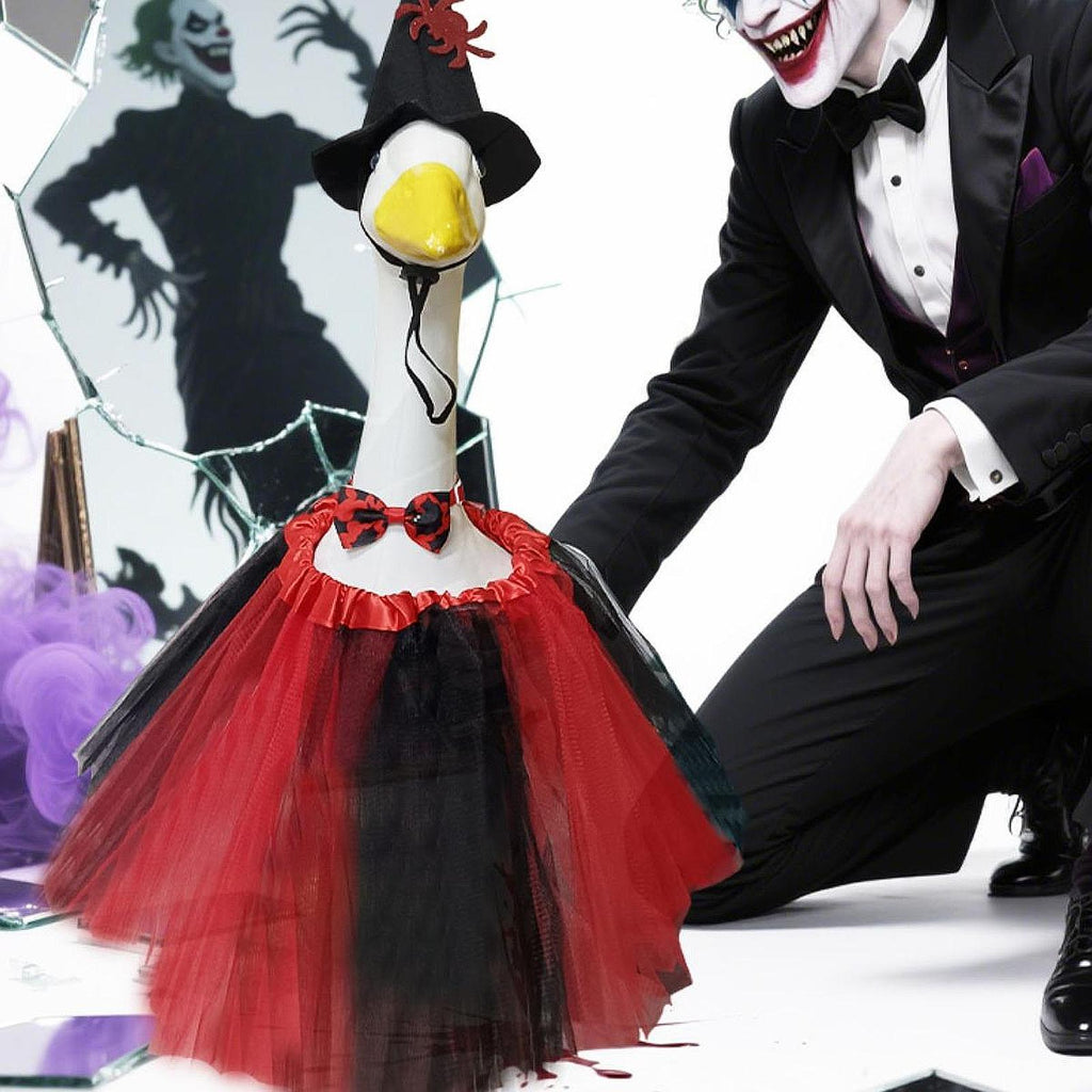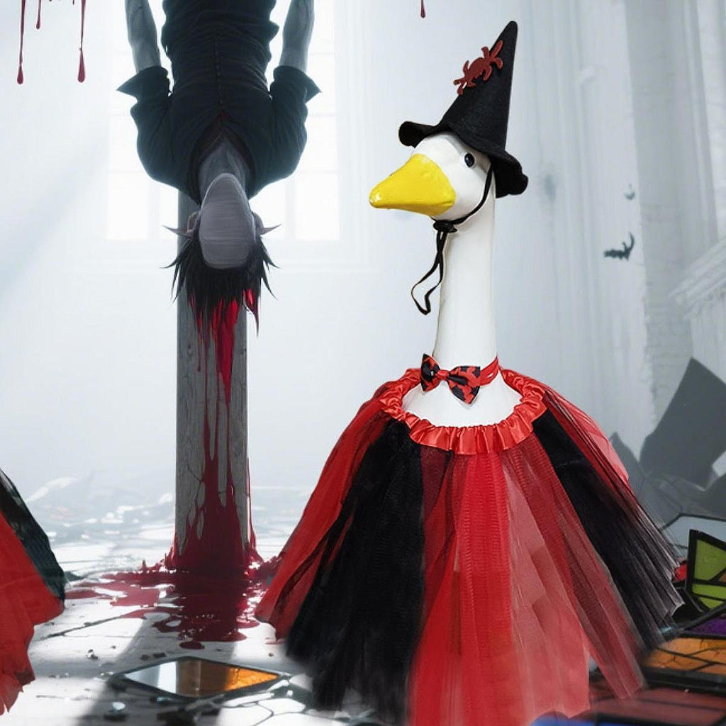 【Eye Catching】: Designed specifically for 23inch outdoor goose statue, Halloween Goose Outfit Includes a hat, bow tie, and skirt