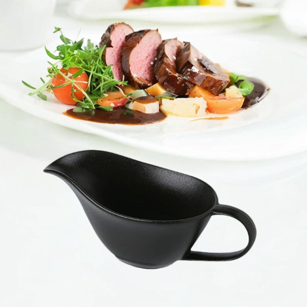 Maxbell Gravy Boat Elegant Photo Props Sauce Boat Container for Beefsteak BBQ Picnic black