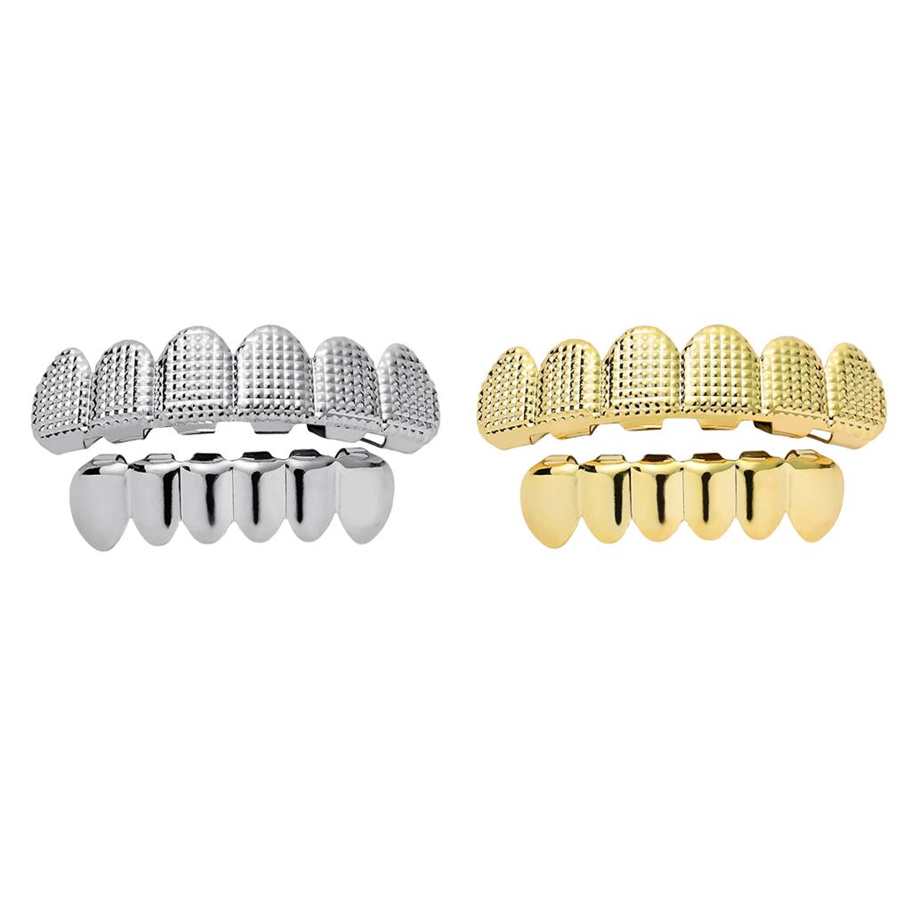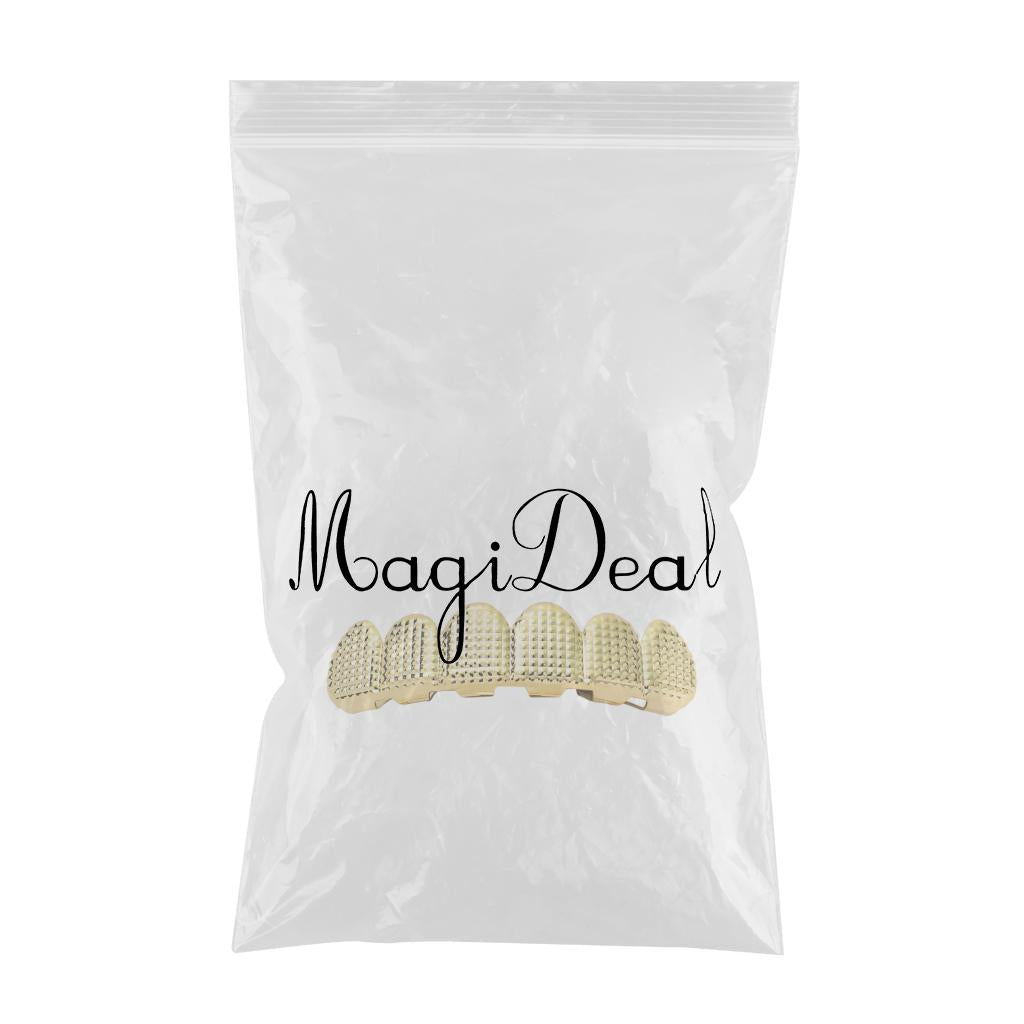 Max Grills Hip Hop Upper Lower 6 Teeth Caps Halloween Cosplay Gold Top