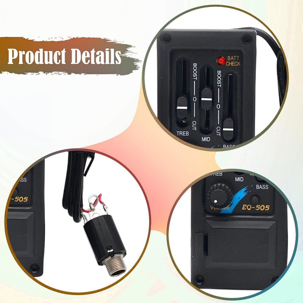 Guitar Pickup 3 Band EQ-505 Left Hand Portable Piezo Pickup Tuner