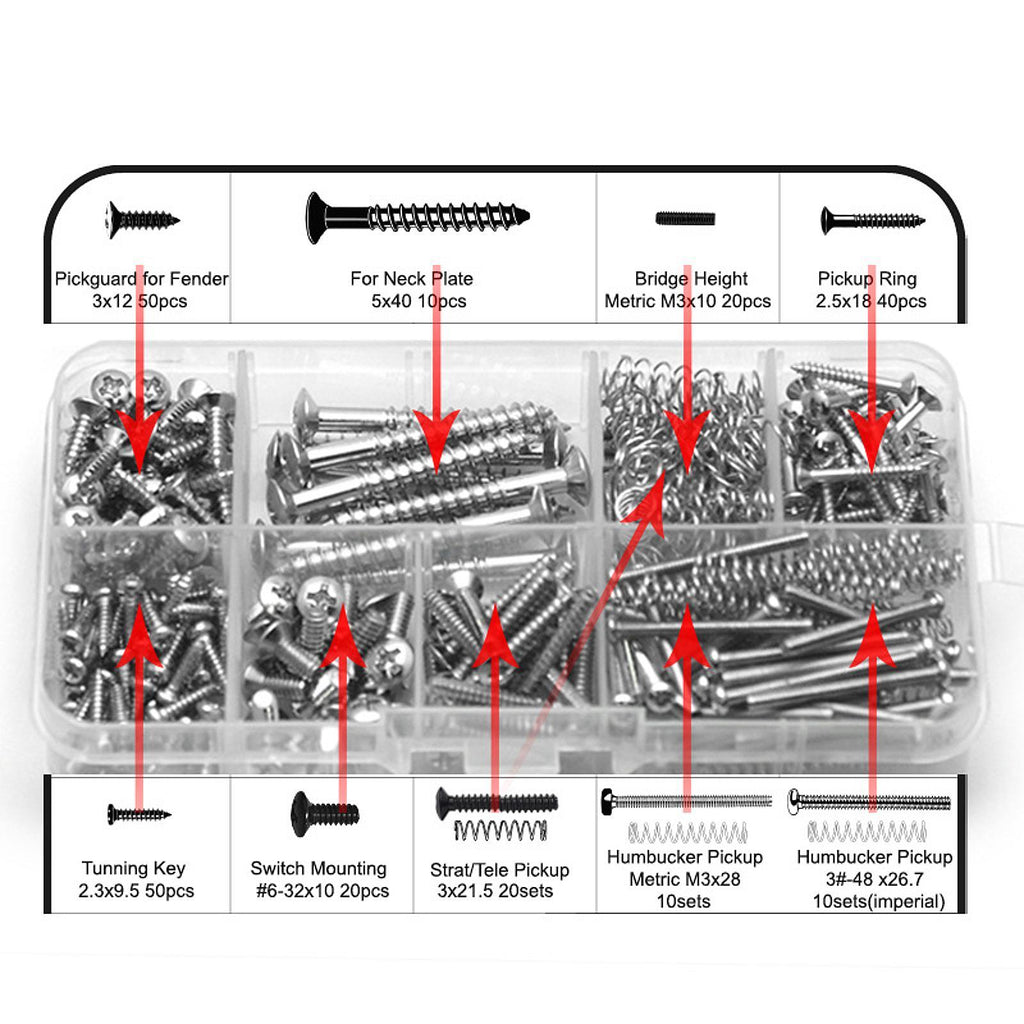- 【Multifunctional Tool】Guitar screw kit assortment set with springs for Electric Guitar Bridge, Pickup, Pickguard, Tuner, Switch, Neck Plate, etc.