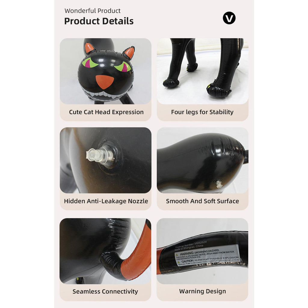 【PVC material, waterproof and wear resistant】: Halloween Inflatable Black Cat uses PVC material, waterproof and wear resistant, suitable for various scenarios such as courtyards, doorways, balconies, living rooms, etc., with a long service life