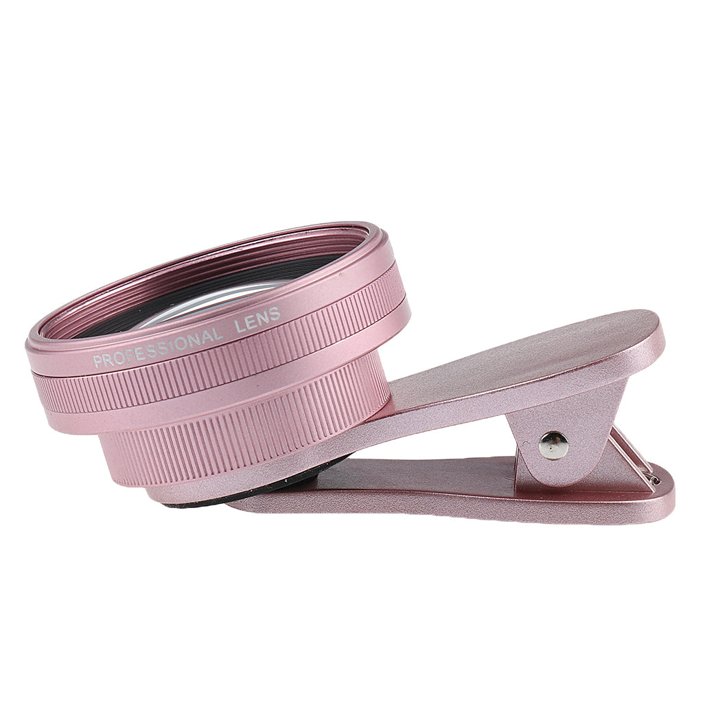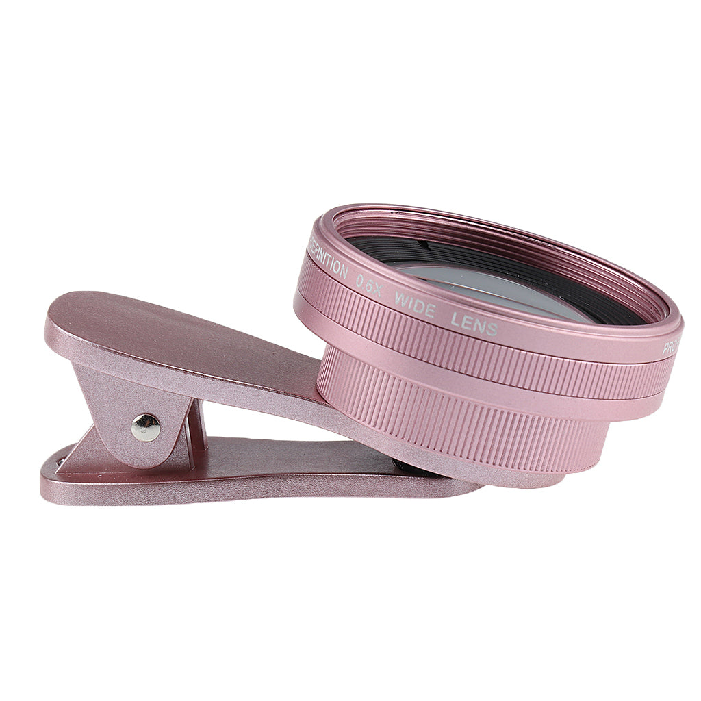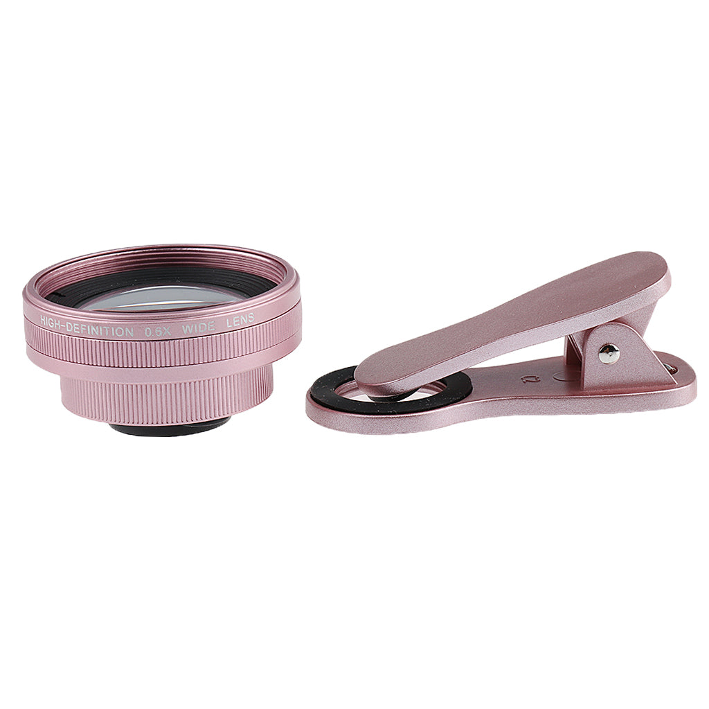 Maxbell HD 0.6X Wide-angle Lens Without Distortion Clip-on w/ Protective Bag for for Samsung Huawei Smart Phone Rose Gold