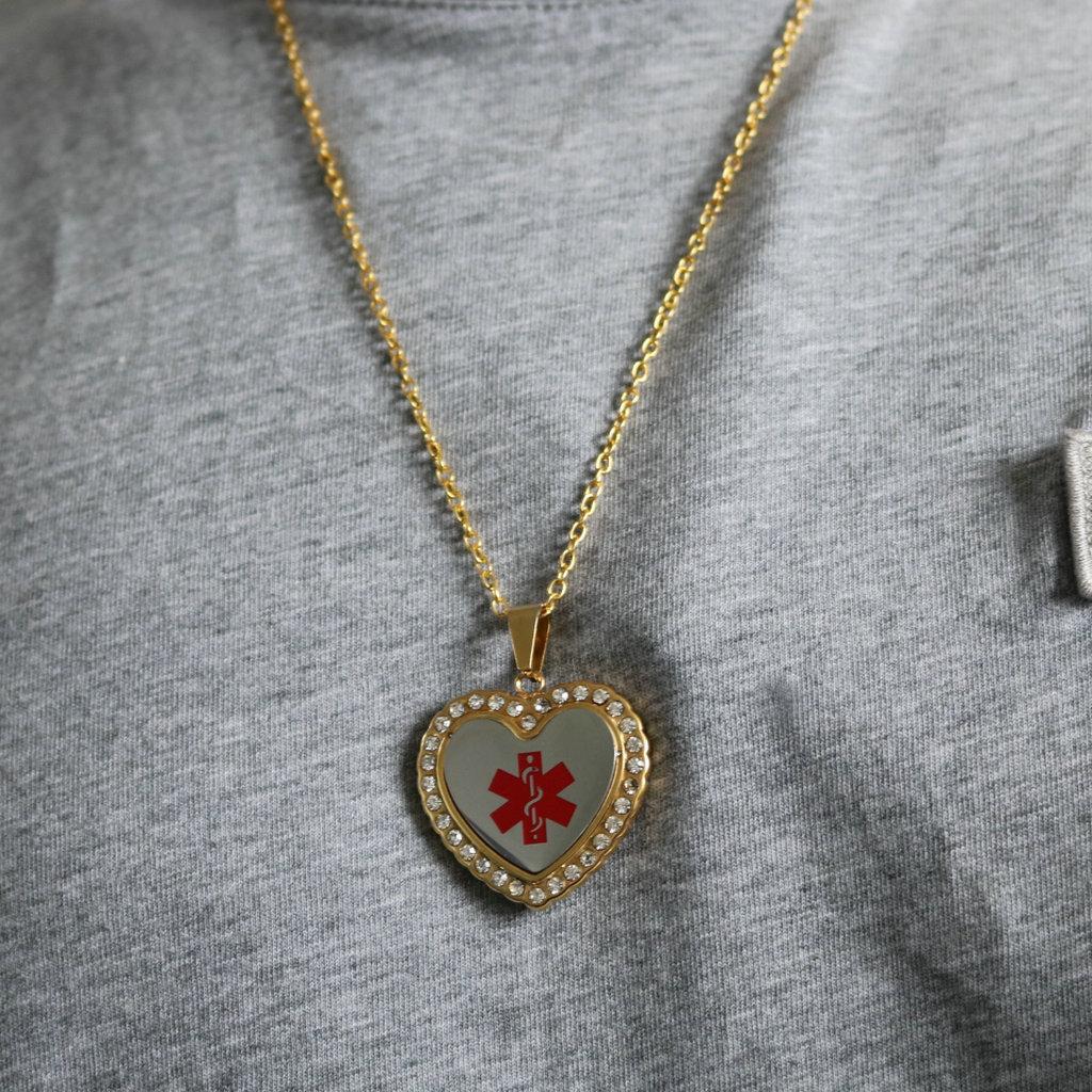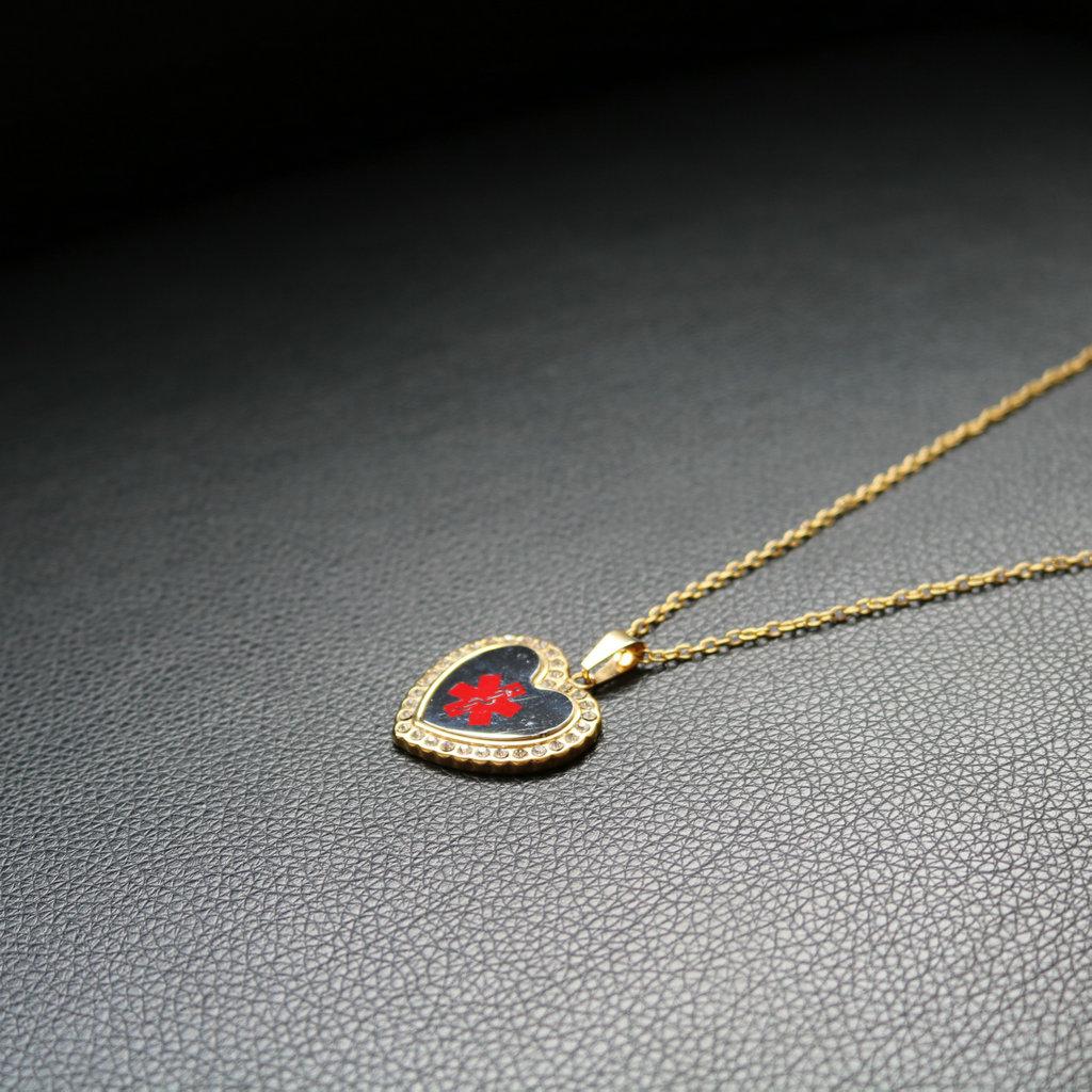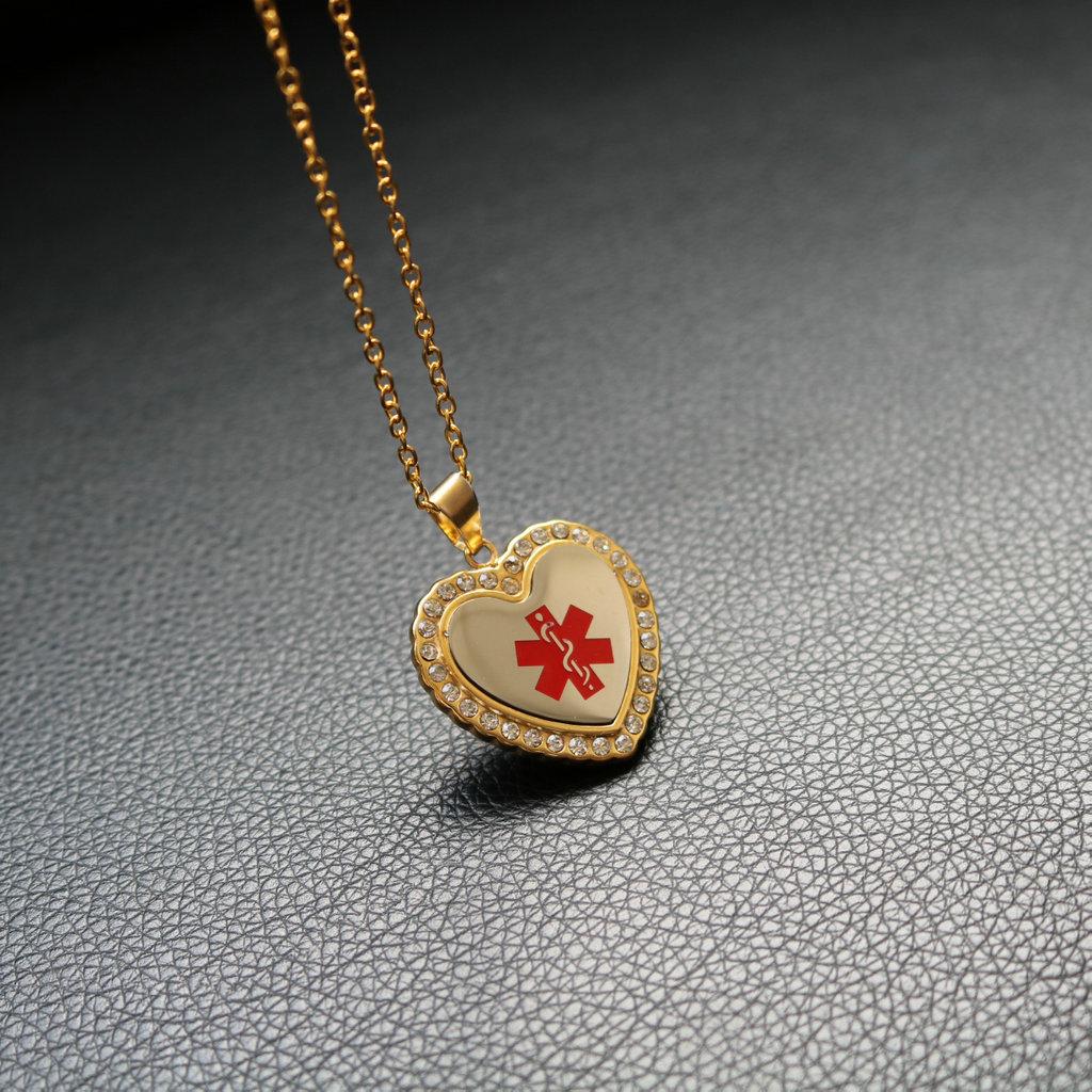 Unique design for women men, the heart-shaped tag with red medical id symbol.