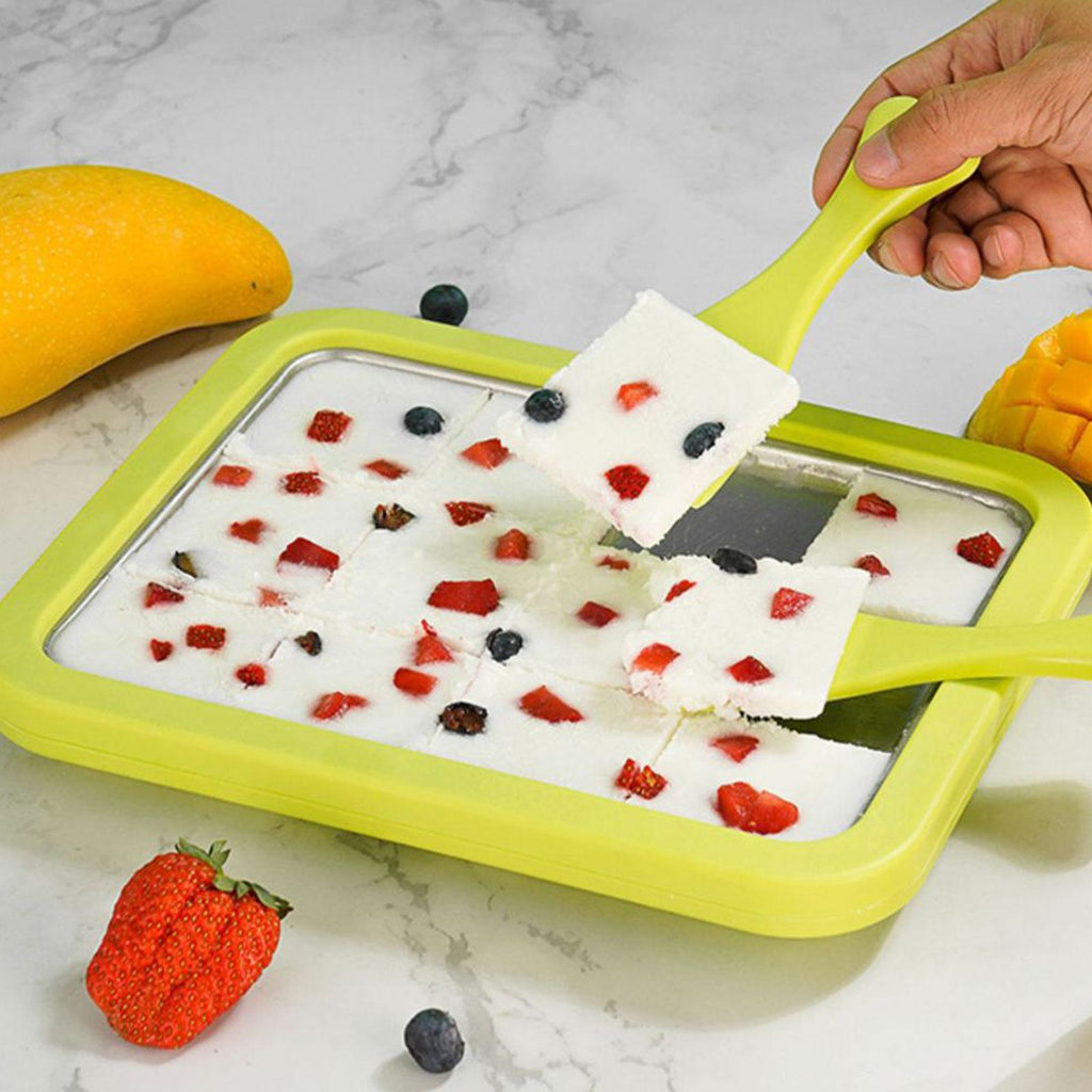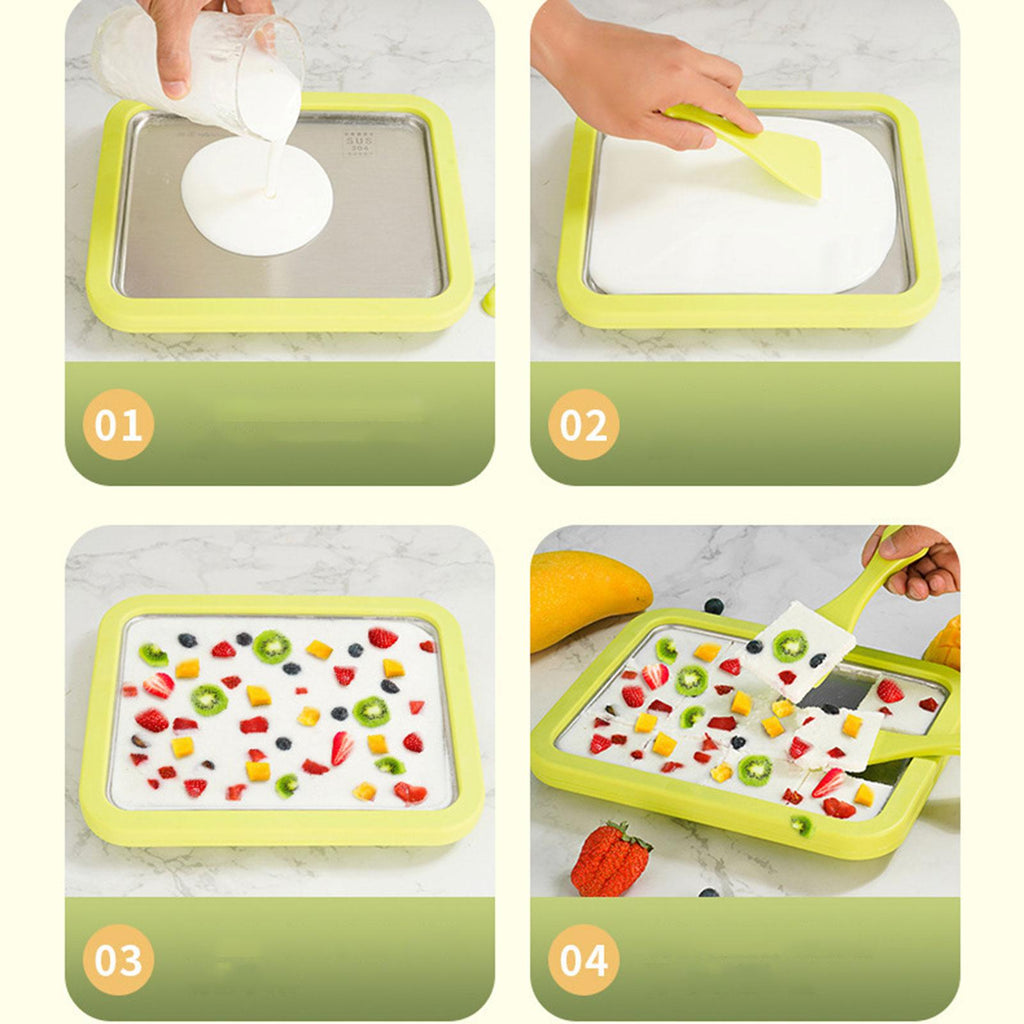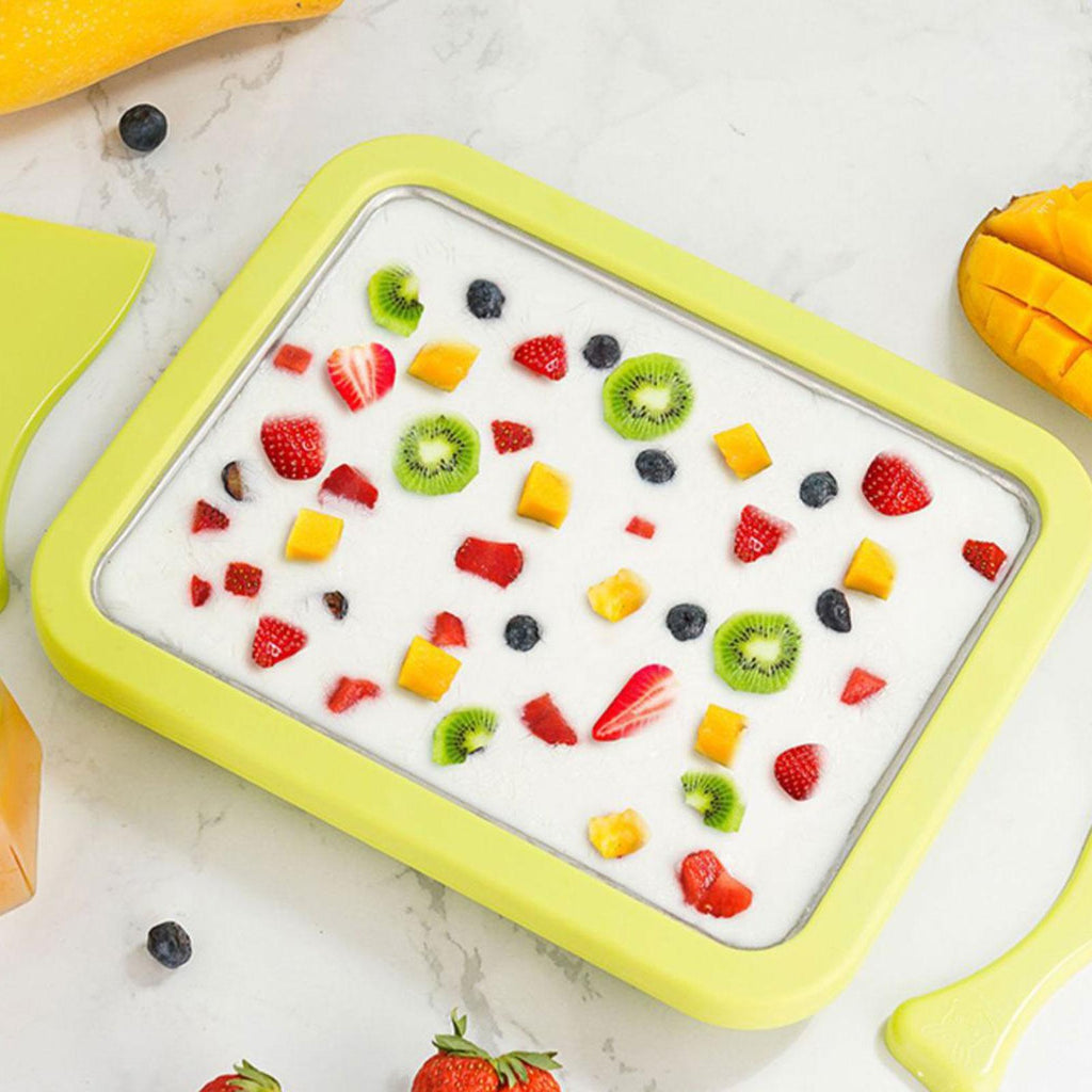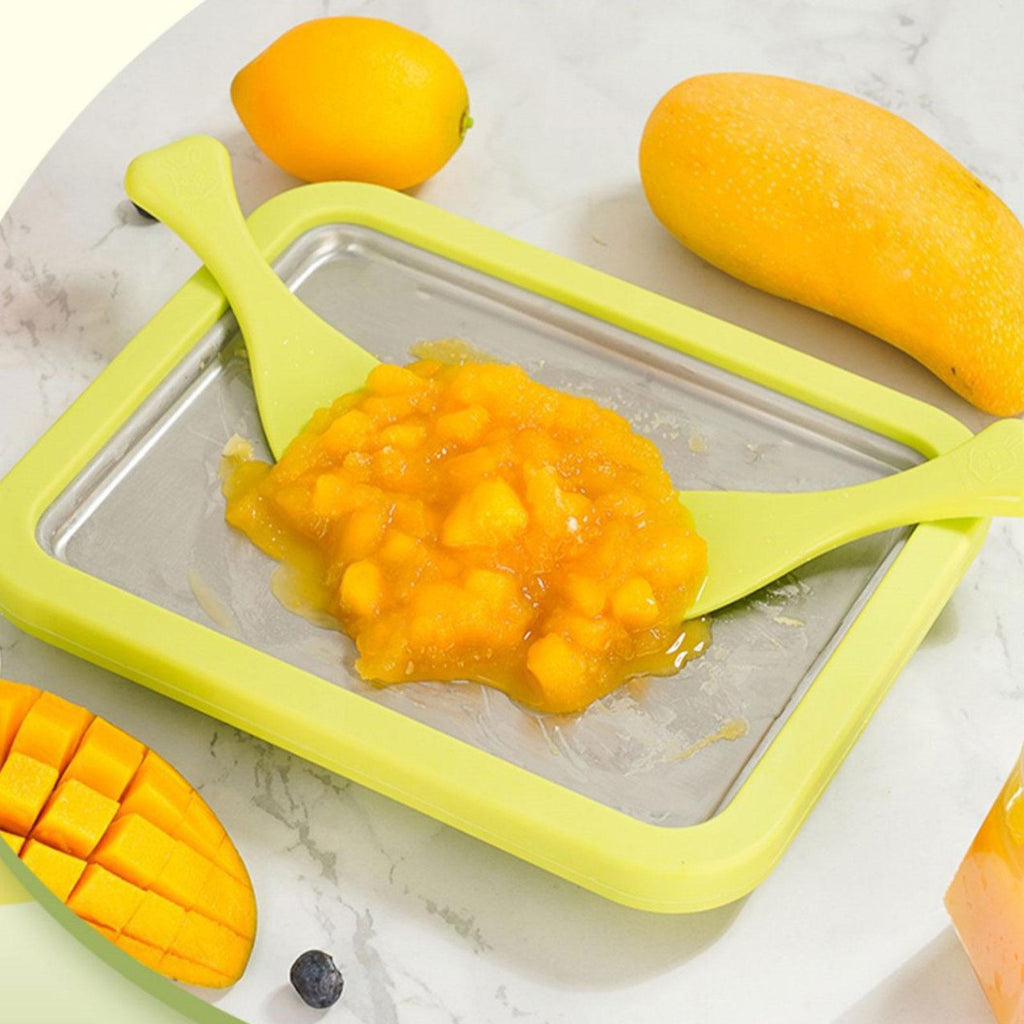 【Enjoyable Experience】: Instant cold plate with 2 spades, ideal for soft ice cream, fruit milkshake smoothie making