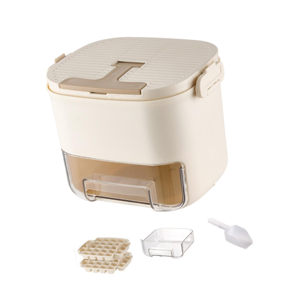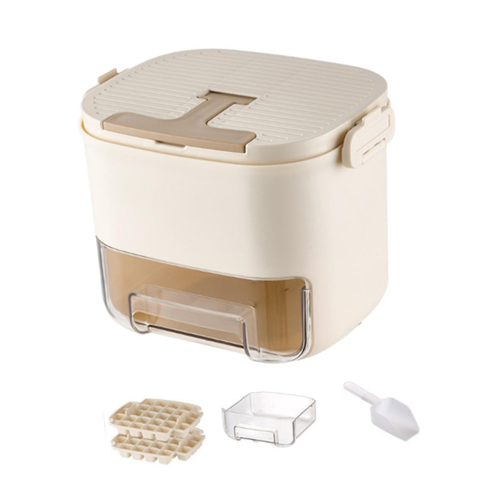 Maxbell Ice Tray with Lid and Bin Quickly Release DIY Ices Box for Hotel Home Coffee Beige