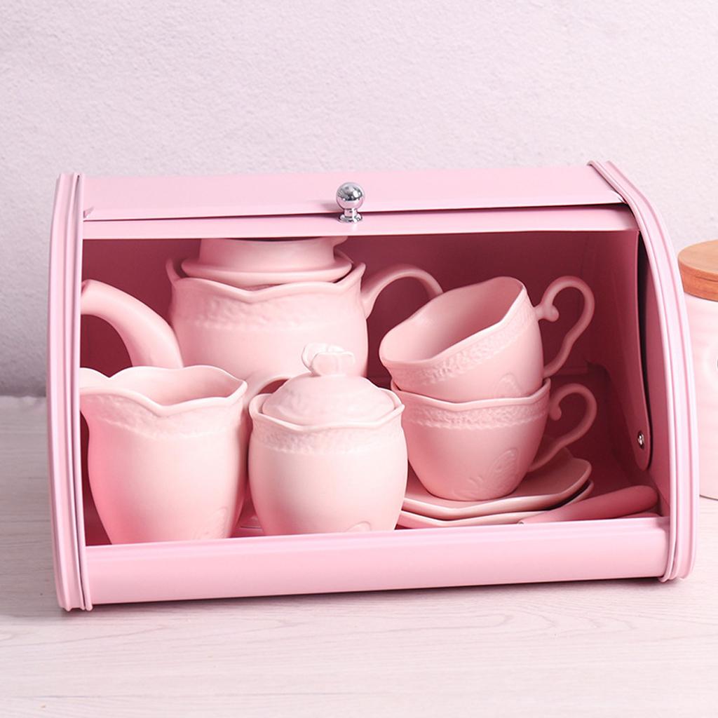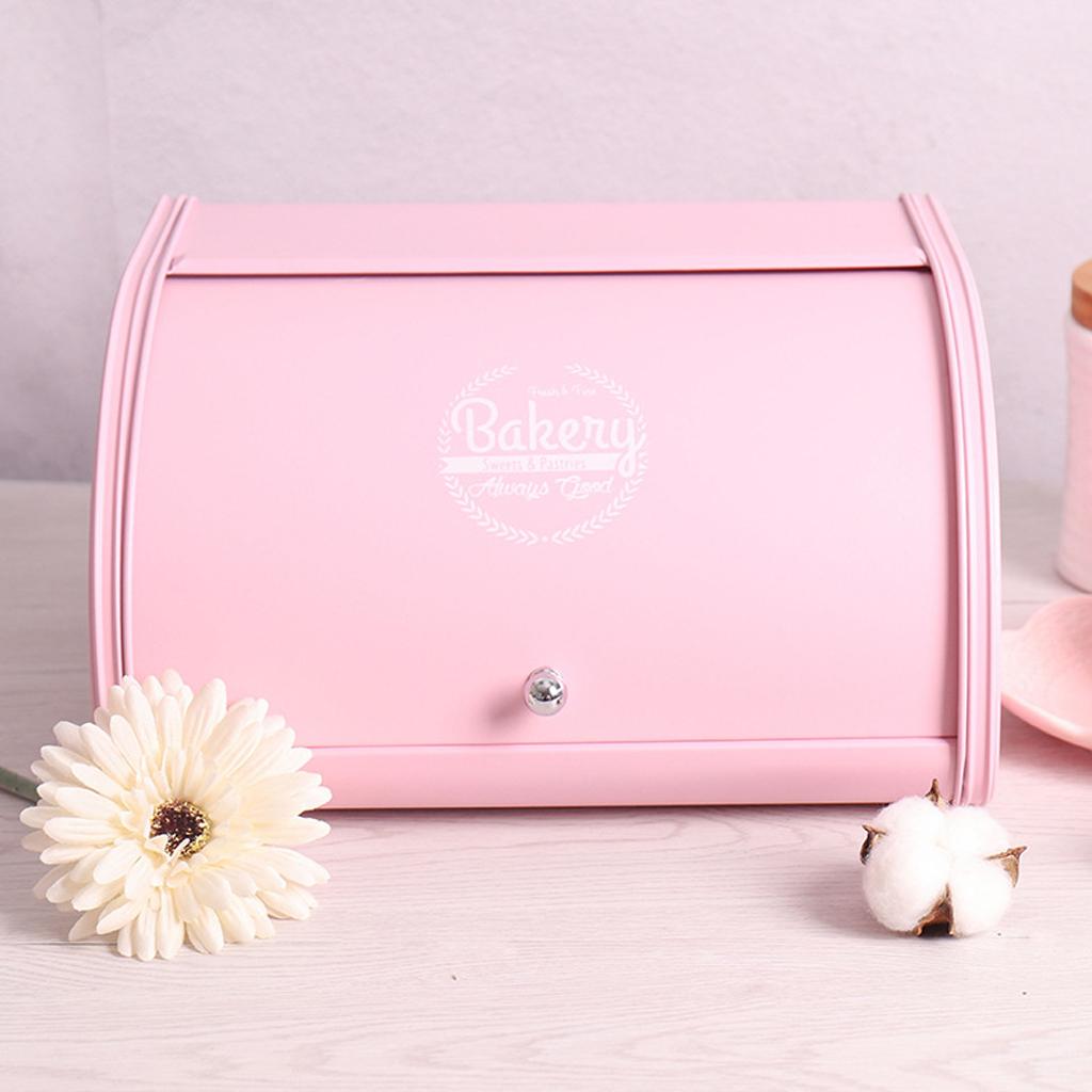 Maxbell Iron Bread Box Retro Bread Bin Cake Basket Storage Organizer Pink