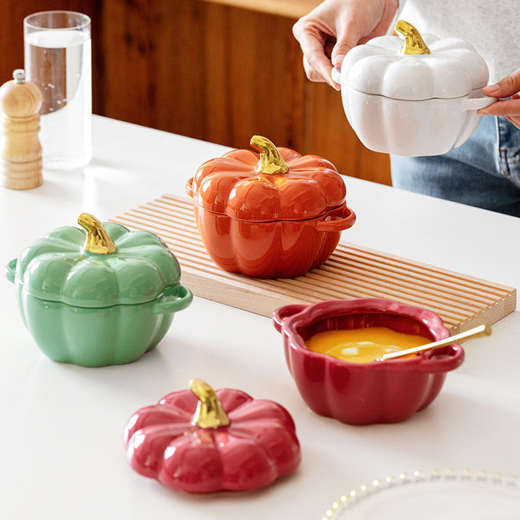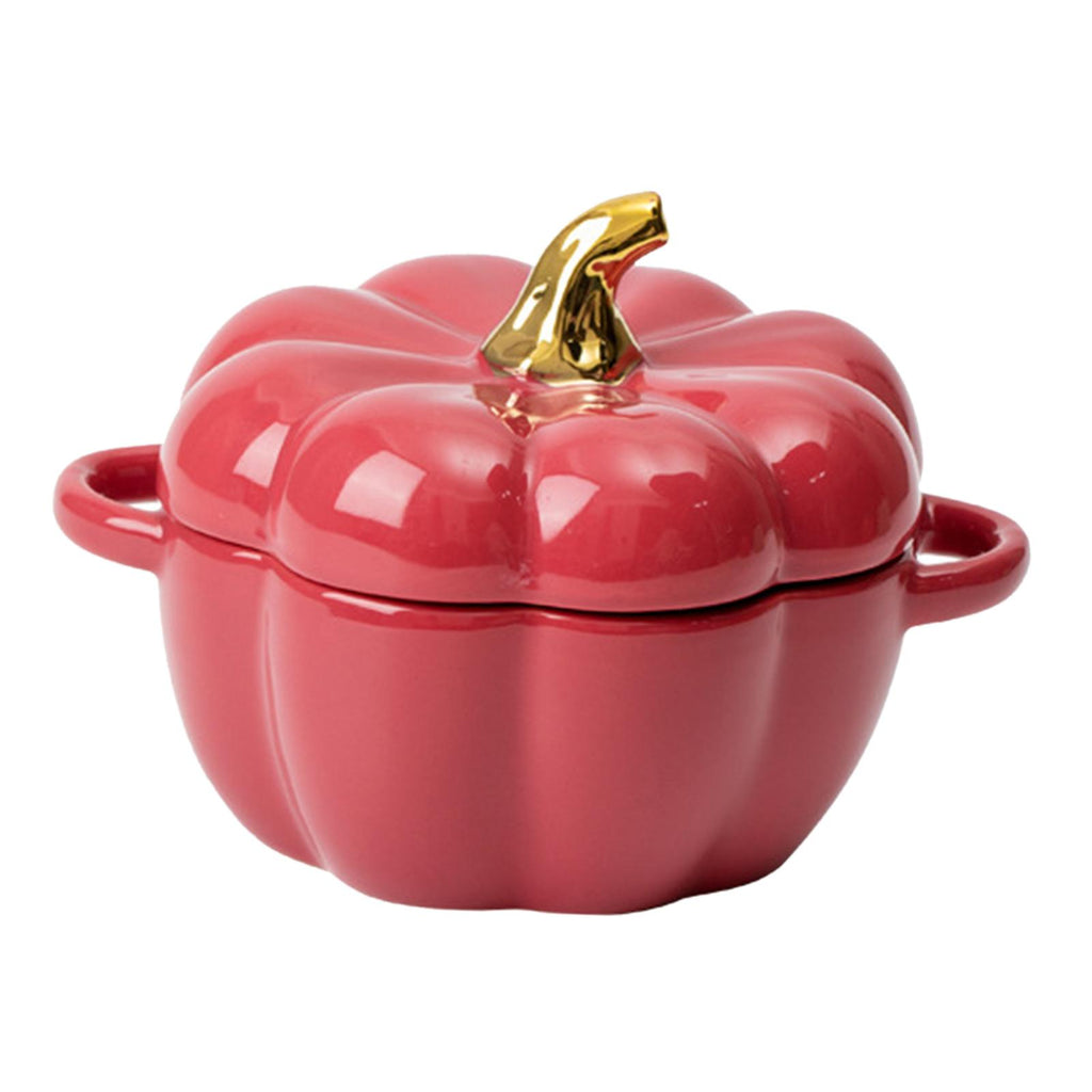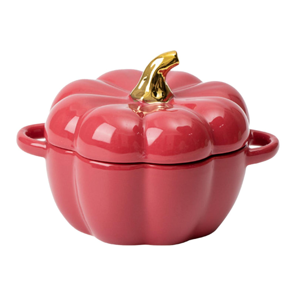 Maxbell Kawaii Cup Pumpkin Cup Cereal Bowls Set with Lid for Pasta Yogurt Salad red