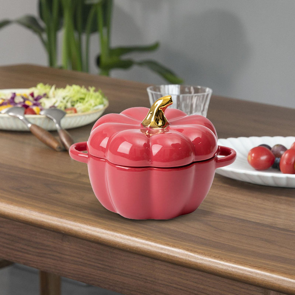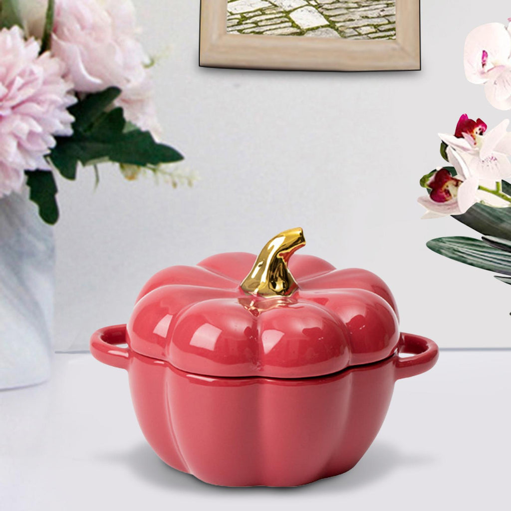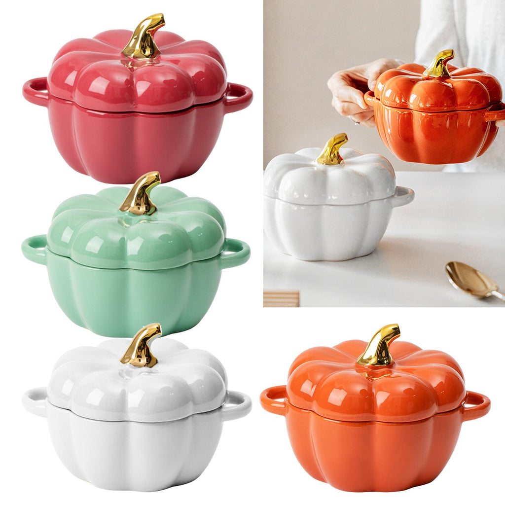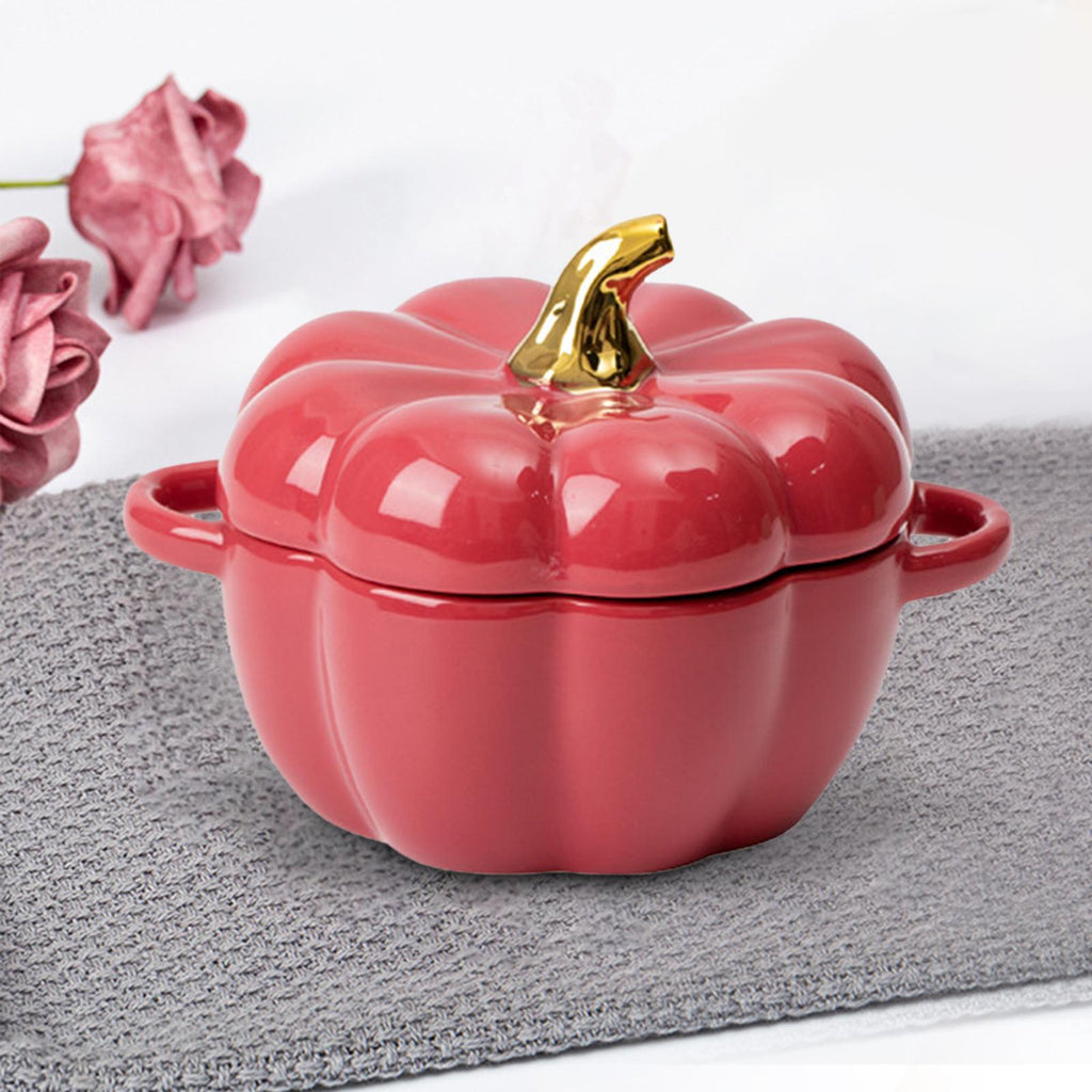 Maxbell Kawaii Cup Pumpkin Cup Cereal Bowls Set with Lid for Pasta Yogurt Salad red