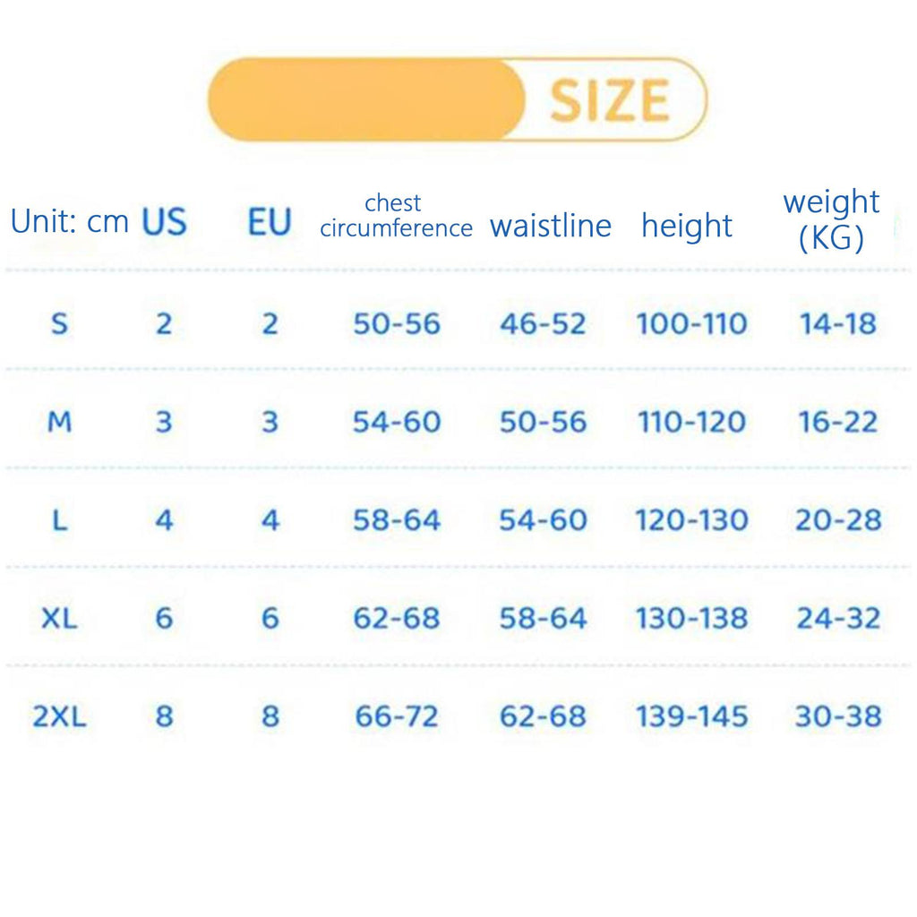L/US4/EU4 - Bust 58cm-64cm, Waist 54cm-60cm, Height 120cm-130cm, Weight 20kg-28kg;
