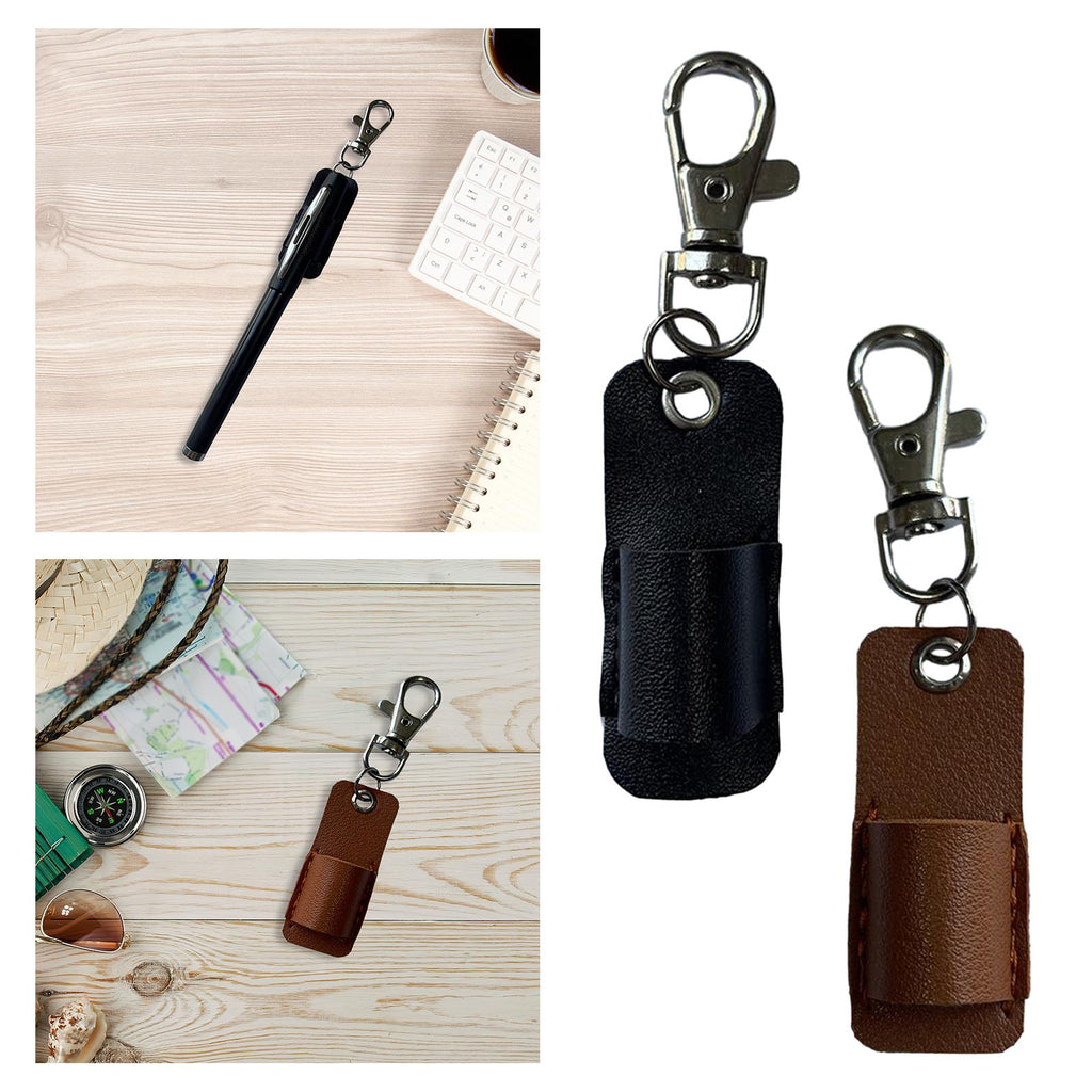 Maxbell Lanyard Pen Holder Portable PU Leather Pen Pouch Holder for Badge Pen Holder Black