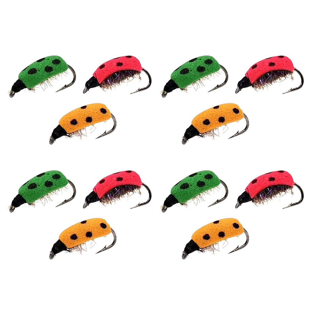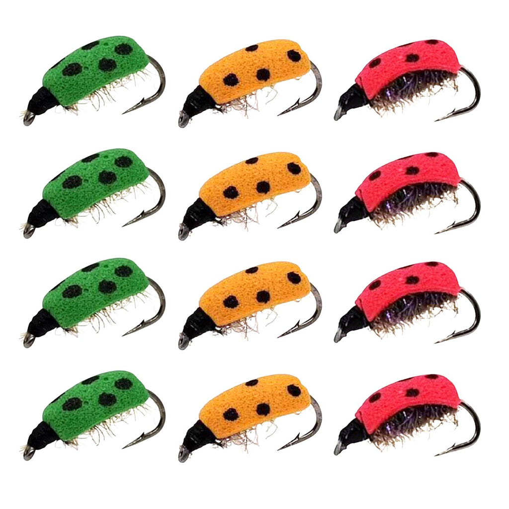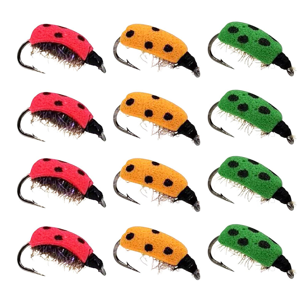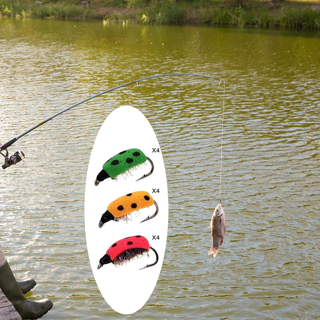 Maxbell Lifelike Ladybug Fly Lure Durable Hooks Sturdy for Streams Fishing Outdoor 12 Piece