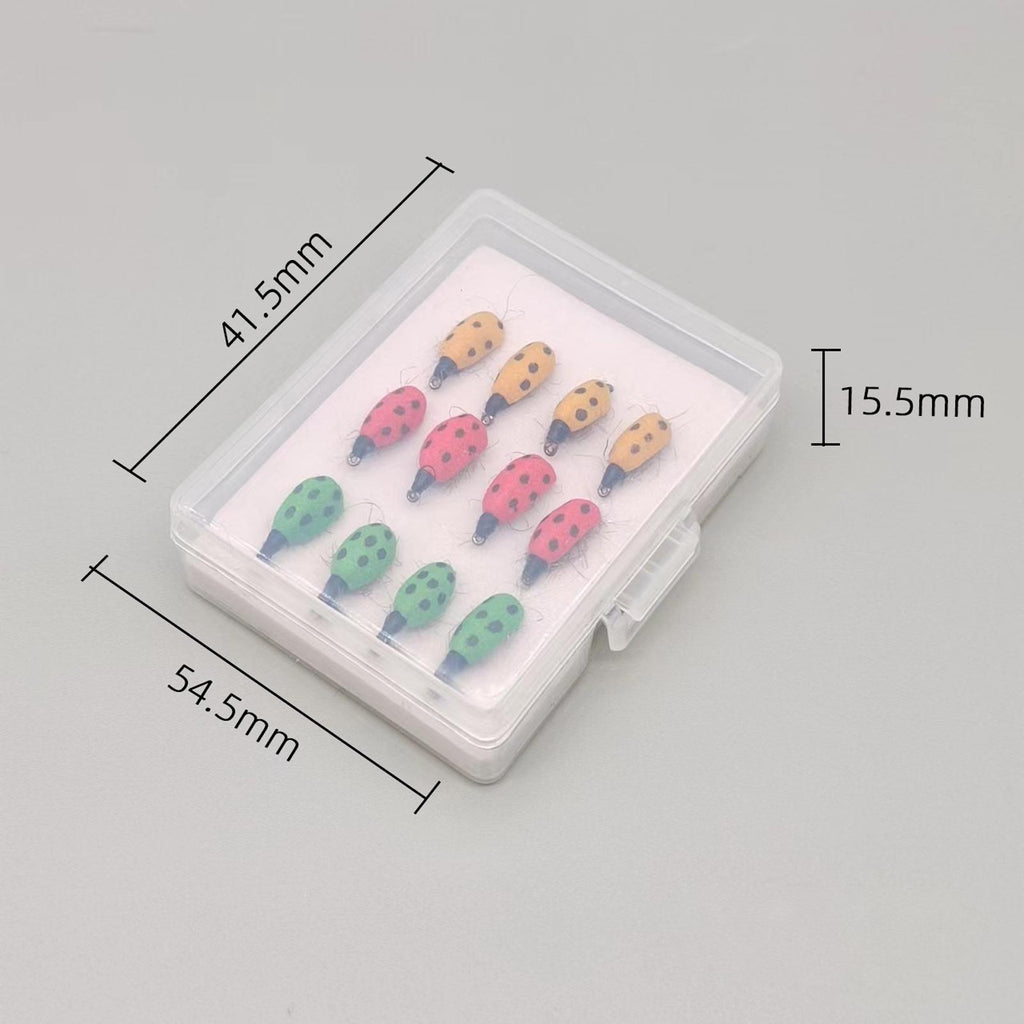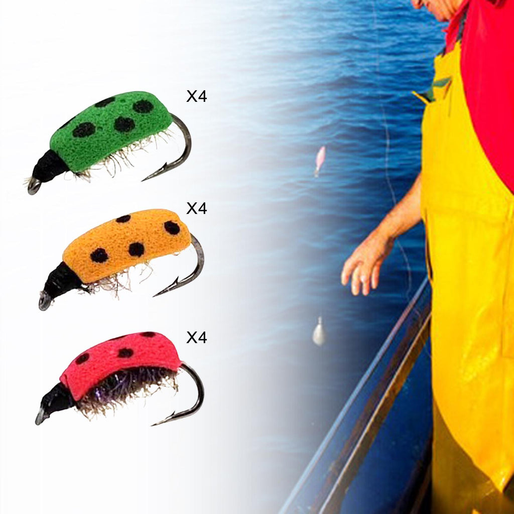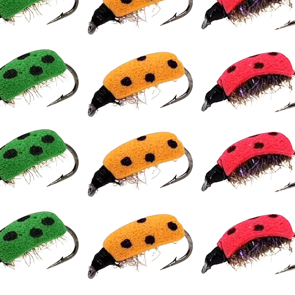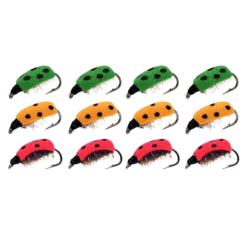 Maxbell Lifelike Ladybug Fly Lure Durable Hooks Sturdy for Streams Fishing Outdoor 12 Piece
