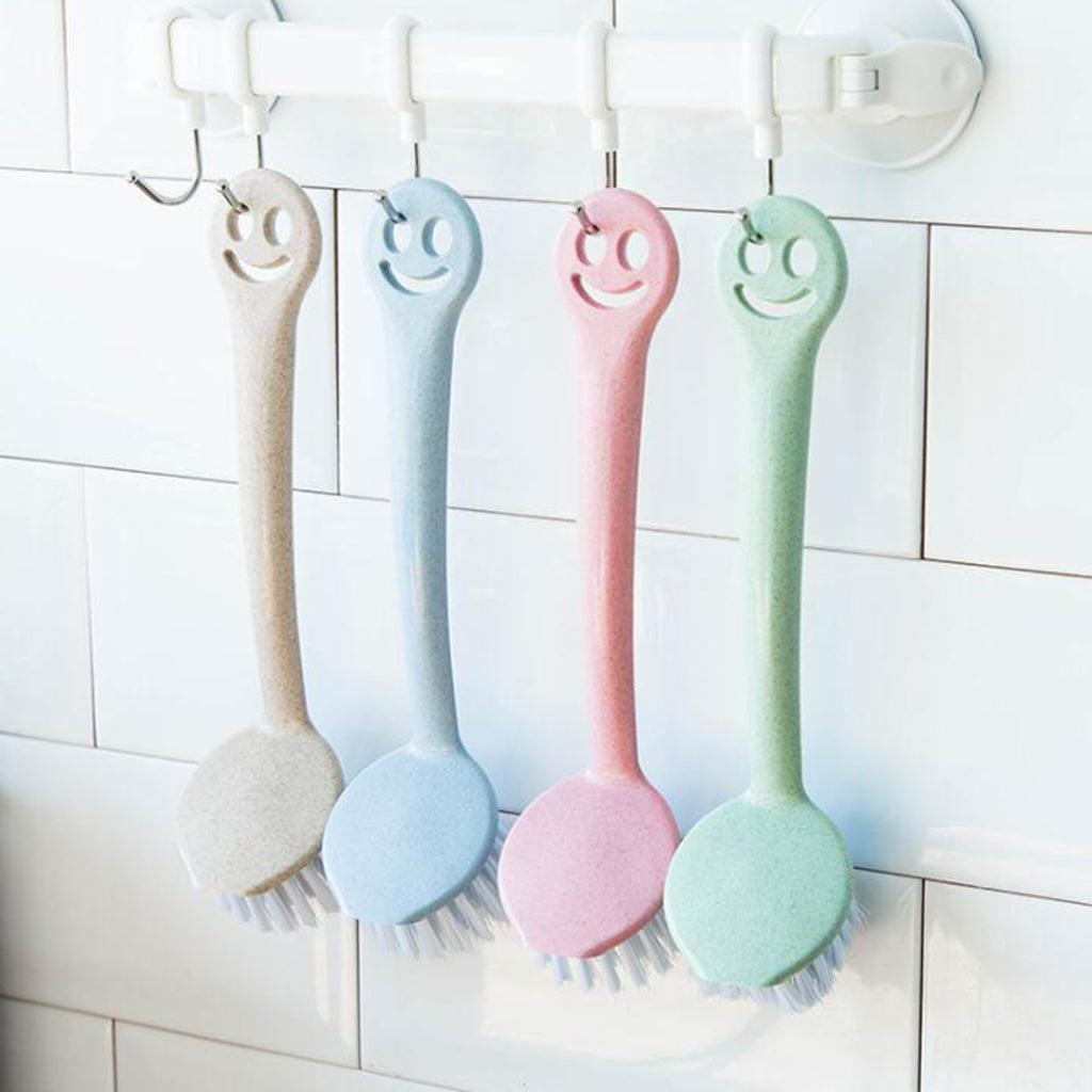 Maxbell Long handle Dish Cleaning Brush Kitchen Brushes Cute Smile Brush Green