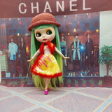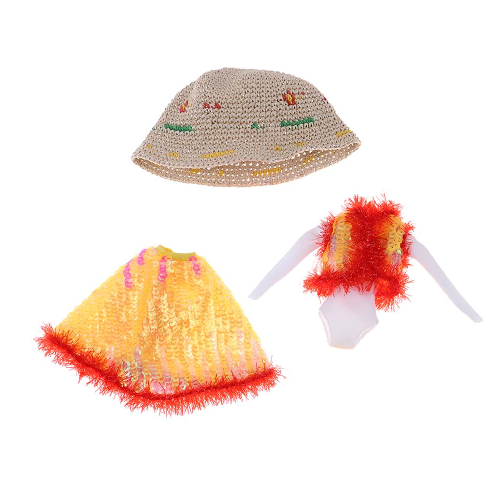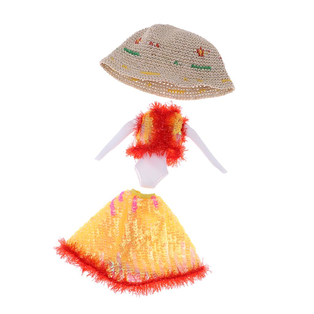 Max Lovely Doll Clothes Set for Blythe Girl Doll Dress up Accessory Red + Yellow