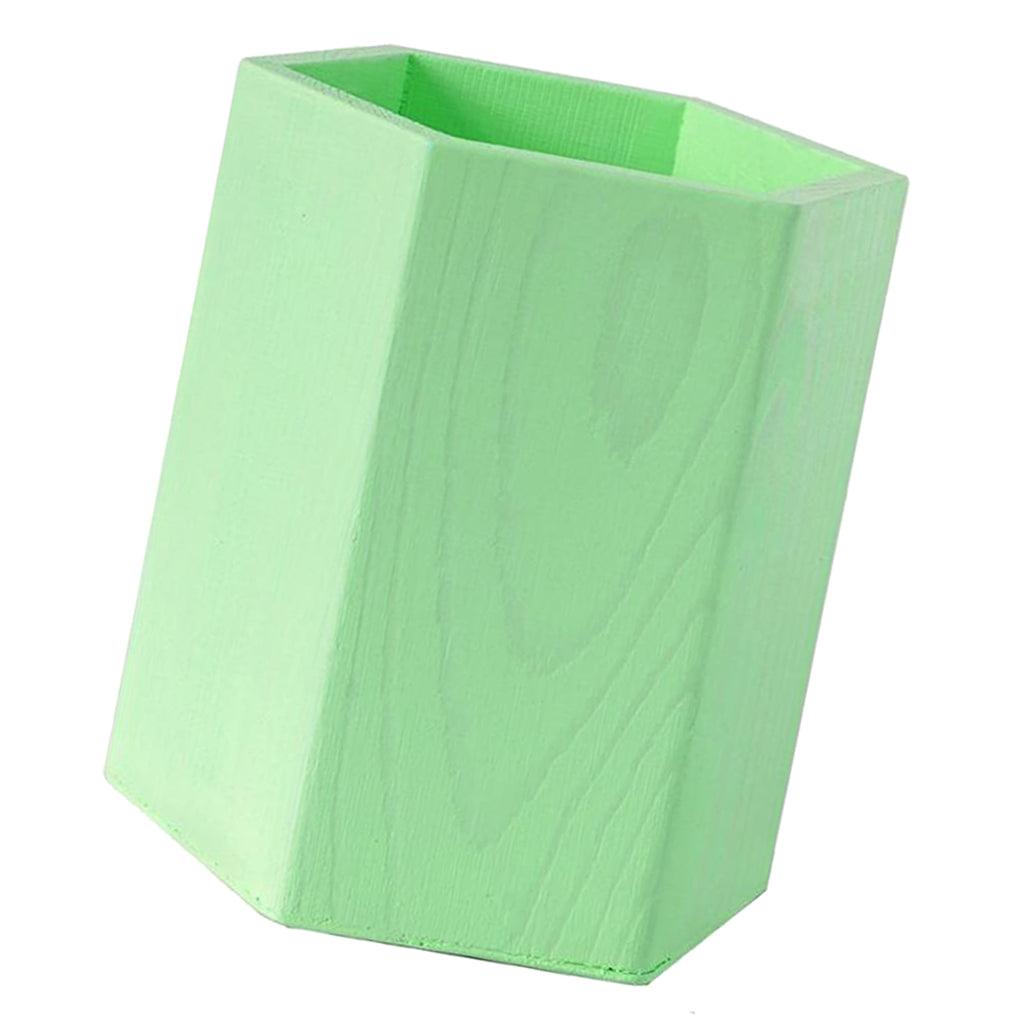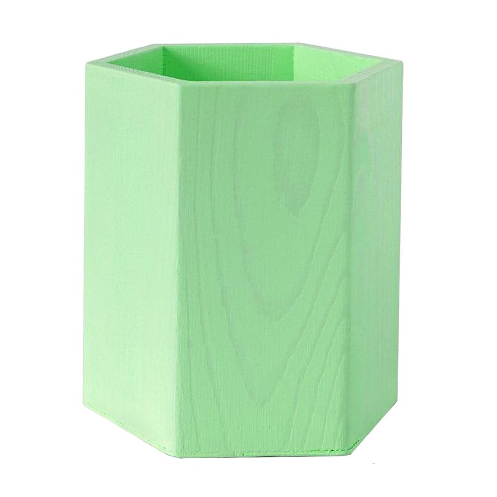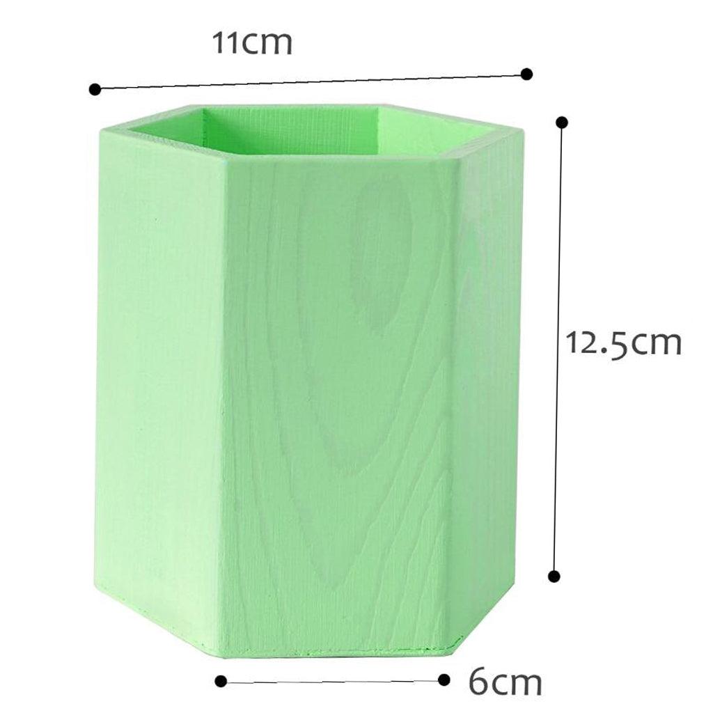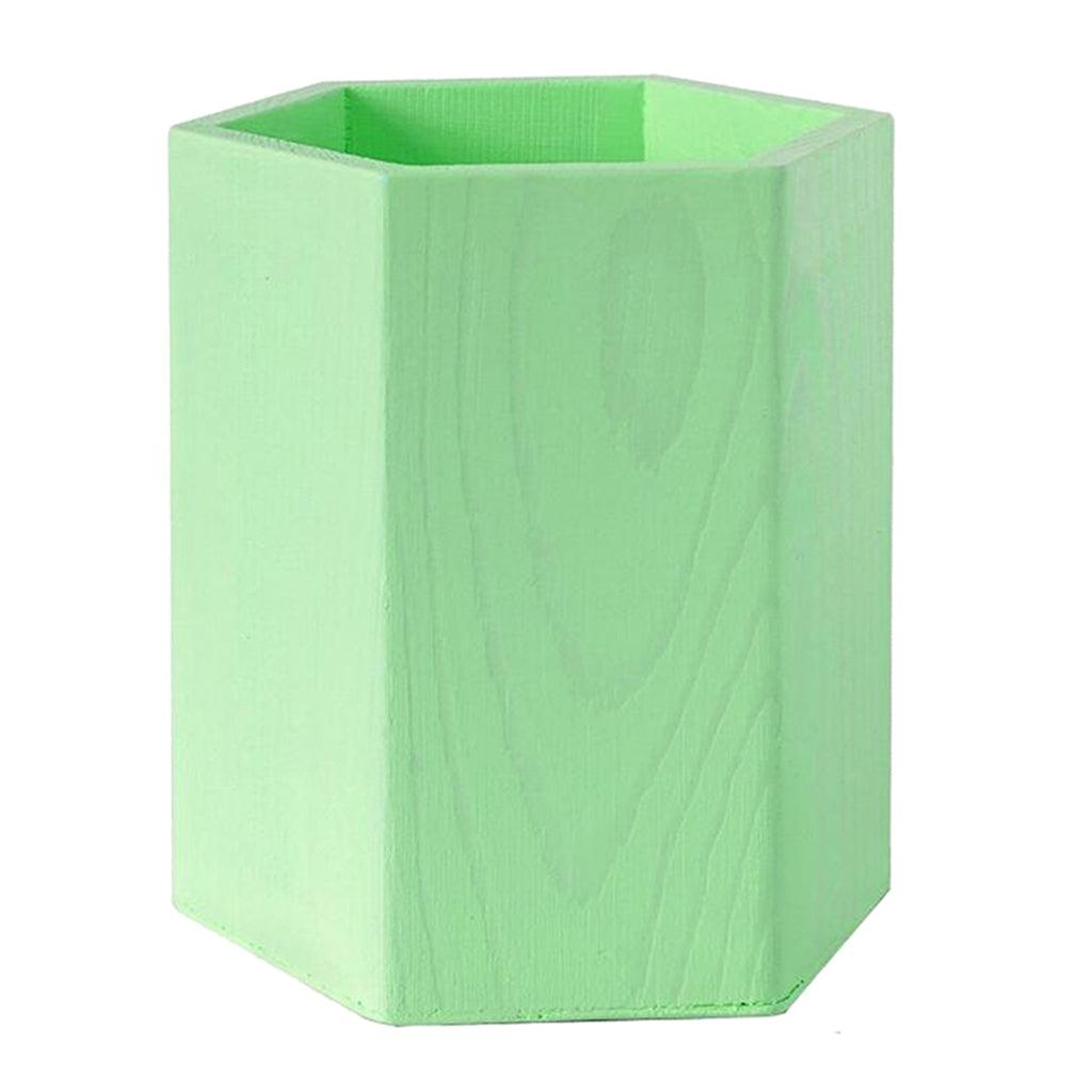 Maxbell Lovely Wooden Tabletop Storage Box Pen Container Brush Pot Green Hexagon