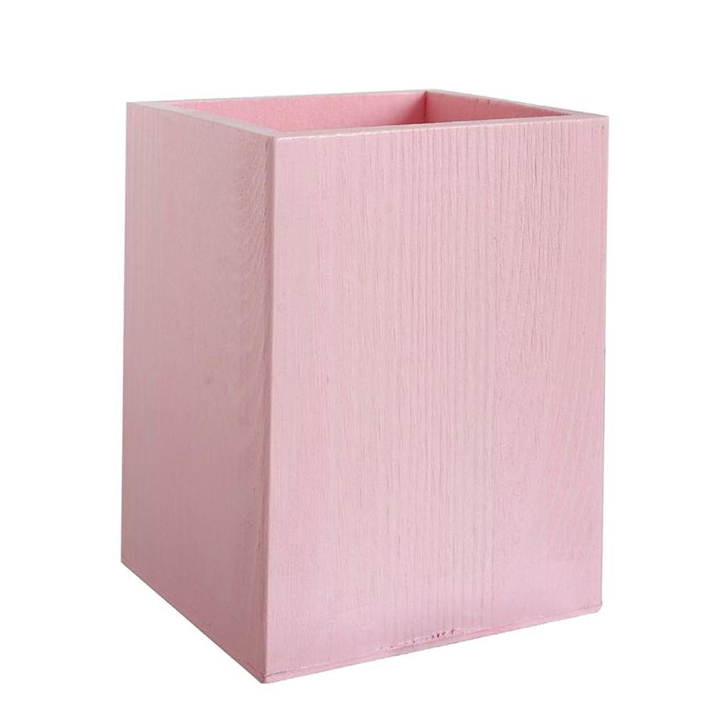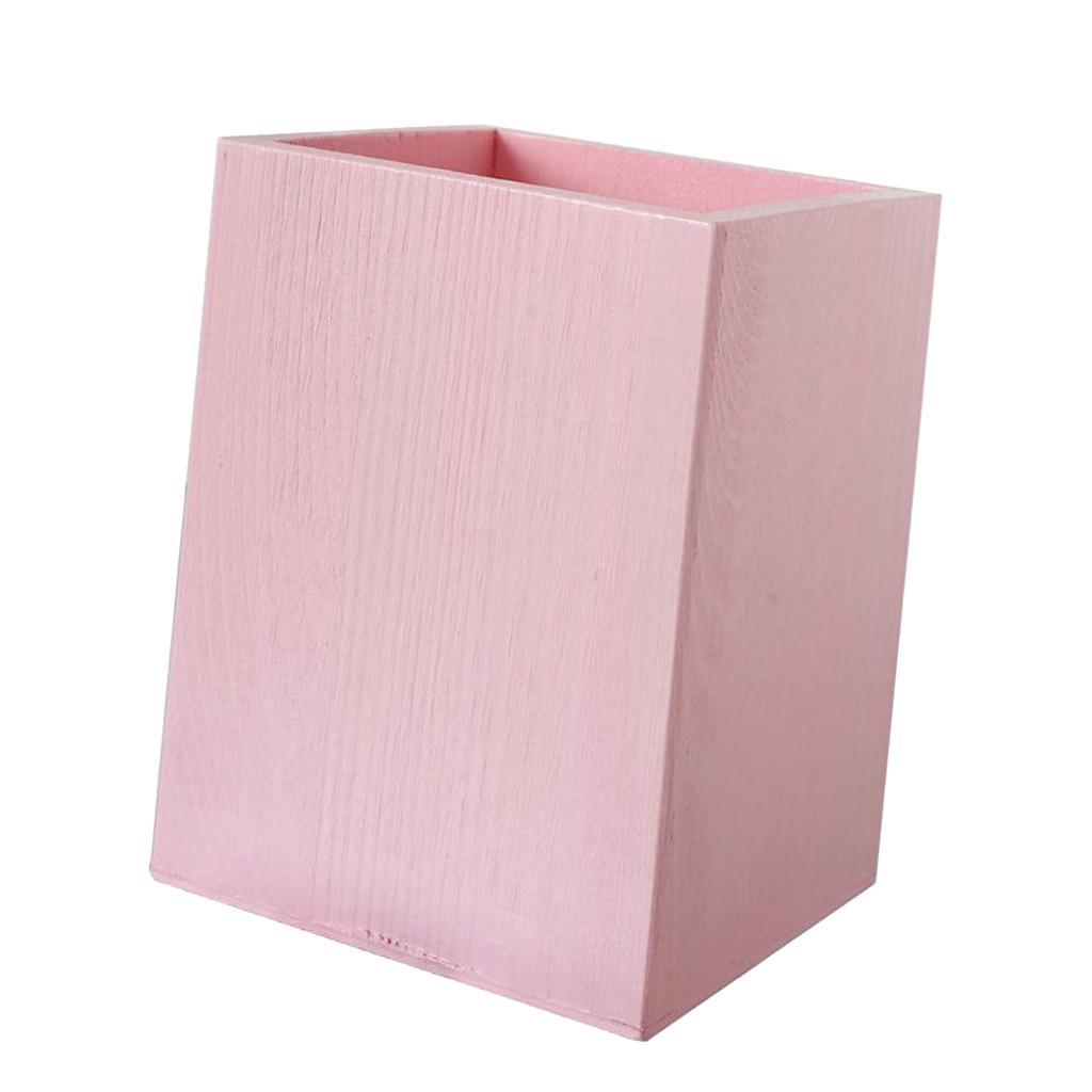 Maxbell Lovely Wooden Tabletop Storage Box Pen Container Brush Pot Pink Square