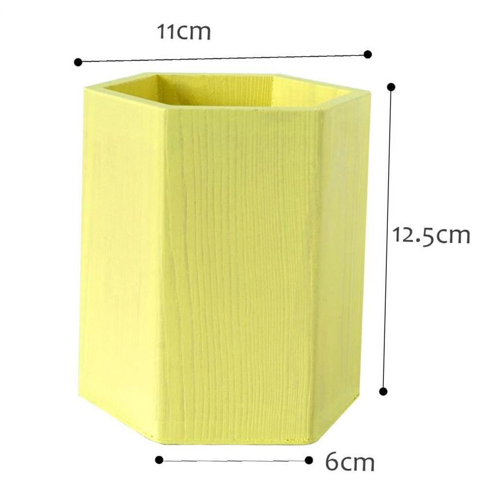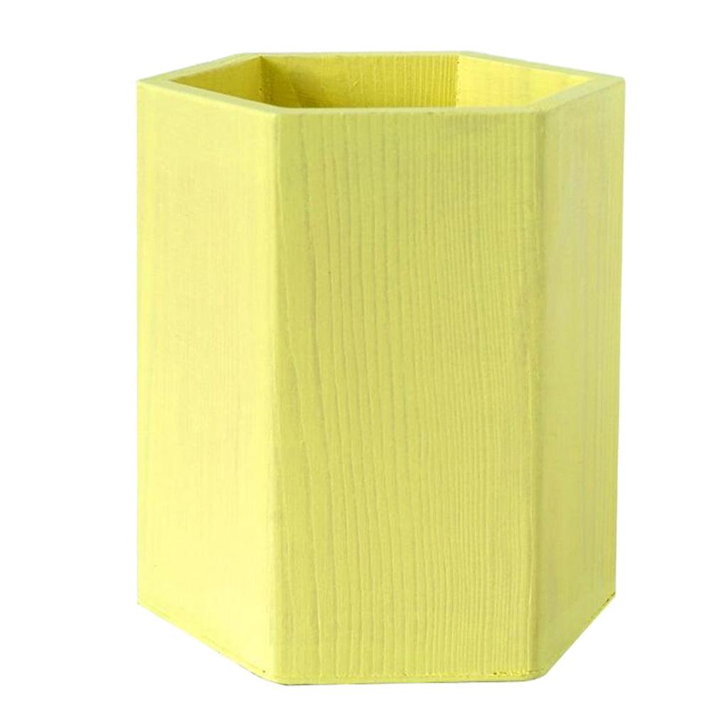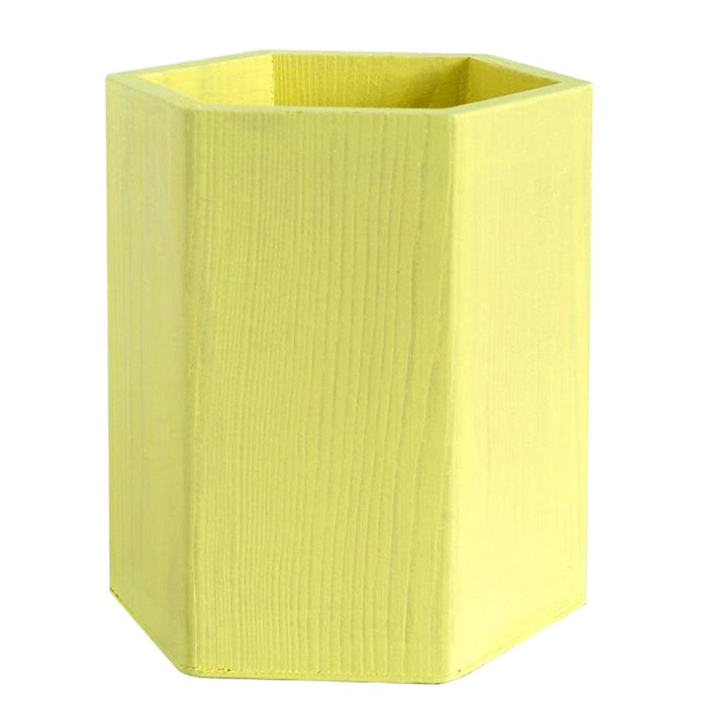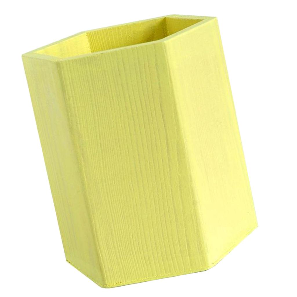 Maxbell Lovely Wooden Tabletop Storage Box Pen Container Brush Pot Yellow Hexagon
