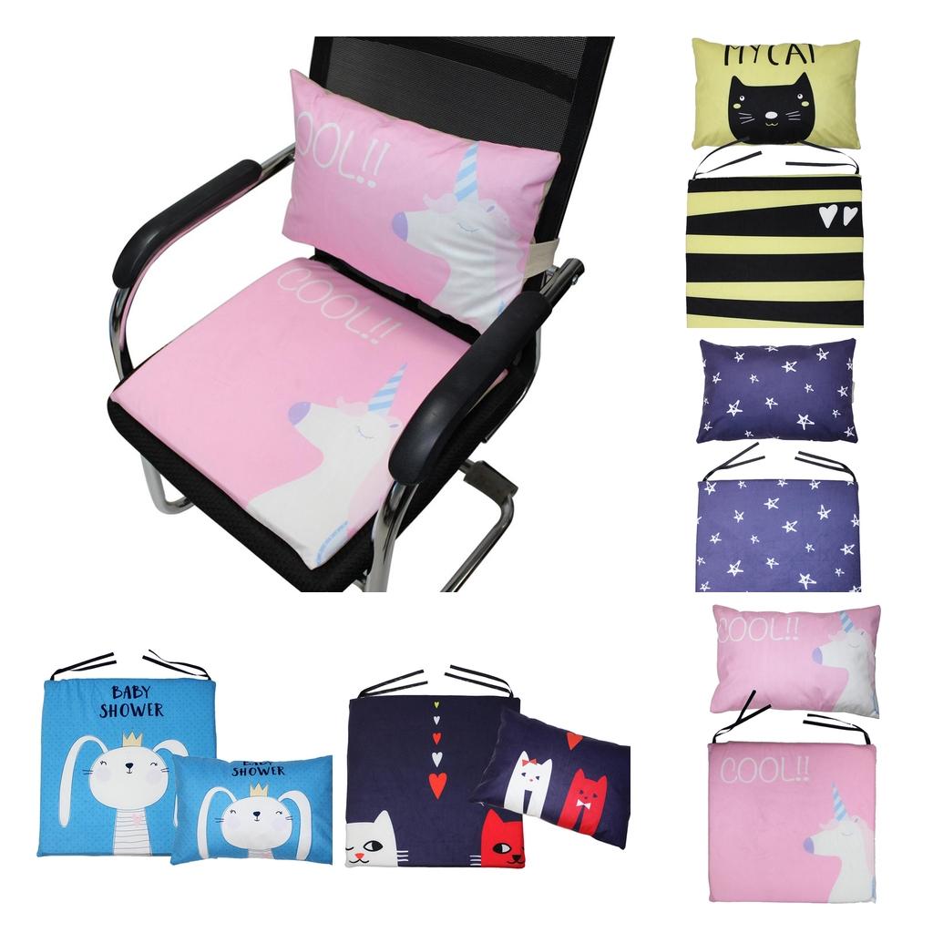 Cartoon Dining Chair Cushion Pad Back Bolster Pillow Set Bear-Pink