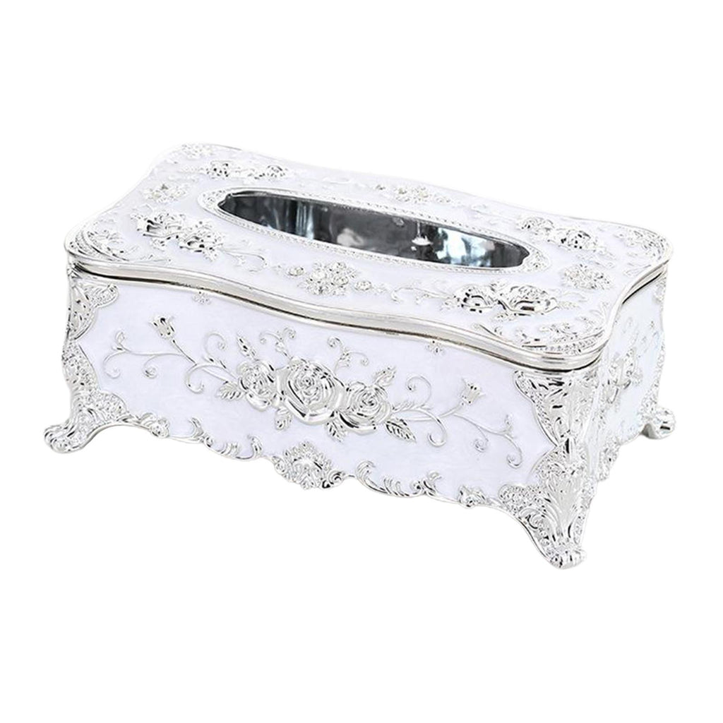 Home Rectangular Tissue Paper Box Case Holder Cover White Silver