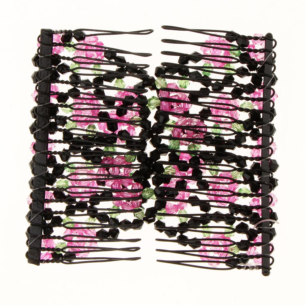 Magic Hair Combs Beads Double Hair Clips Stretchy Hair Accessories Rose