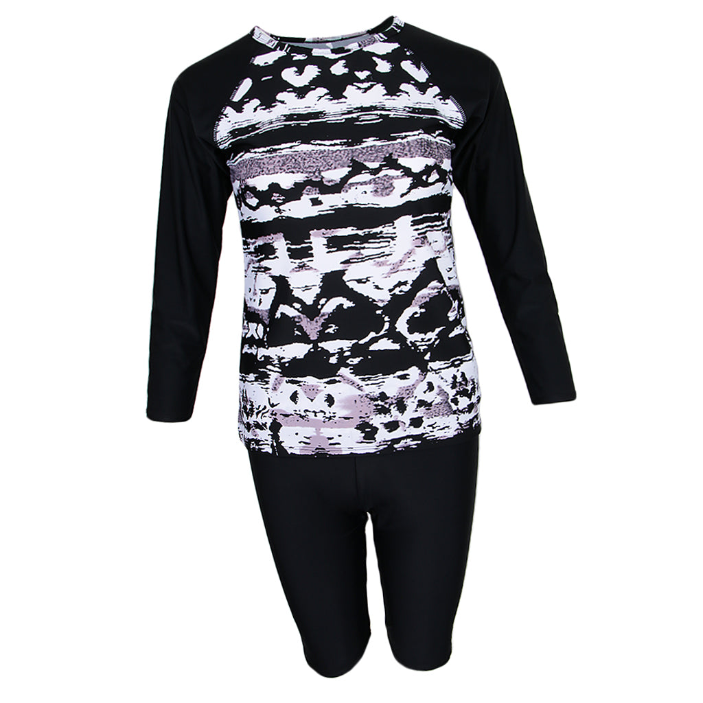 Fashion abstract print Hindu Islamic muslim women swimsuit, including long sleeve tops and pants