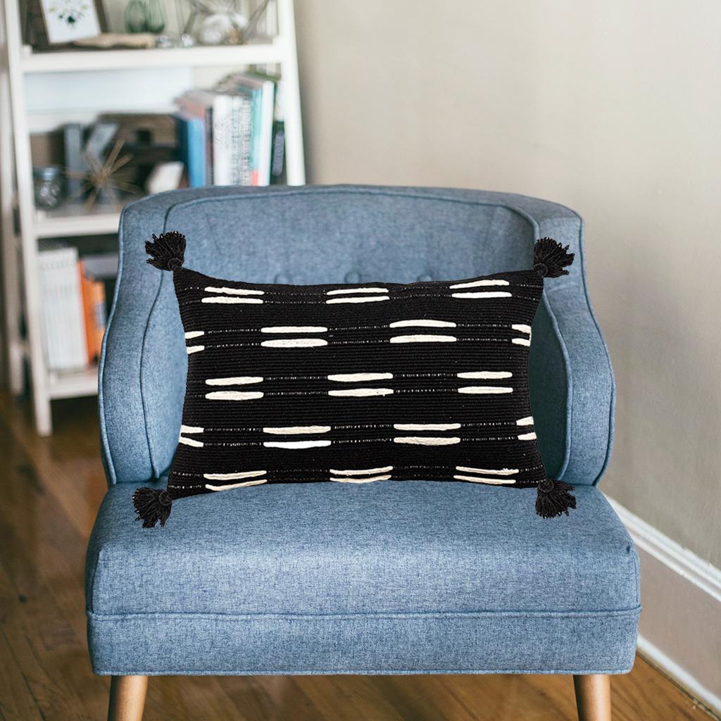 Pillowcase Weaving Tassels Elegance Throw Pillow Cover Cotton Sofa Decor Black Rectangle