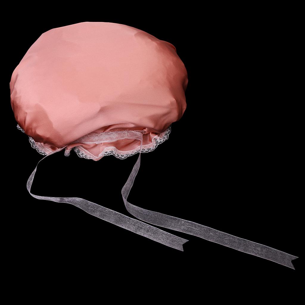 Pink Pure Silk Adjustable Sleeping Hat Night Cap with White Lace