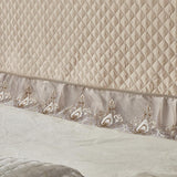 Made of soft polyester, with elegant embroidery lace drop on the front bottom, elastic back material make it stretchable to fit the headboard.
