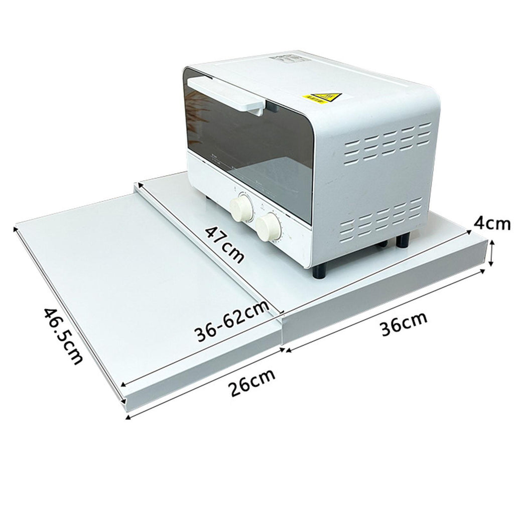 【Adjustable Length for Versatile Use】: The rack features an extendable design with a length range of 36-62cm, allowing you to diy it to fit various spaces and accommodate different appliances like ovens or rice cookers