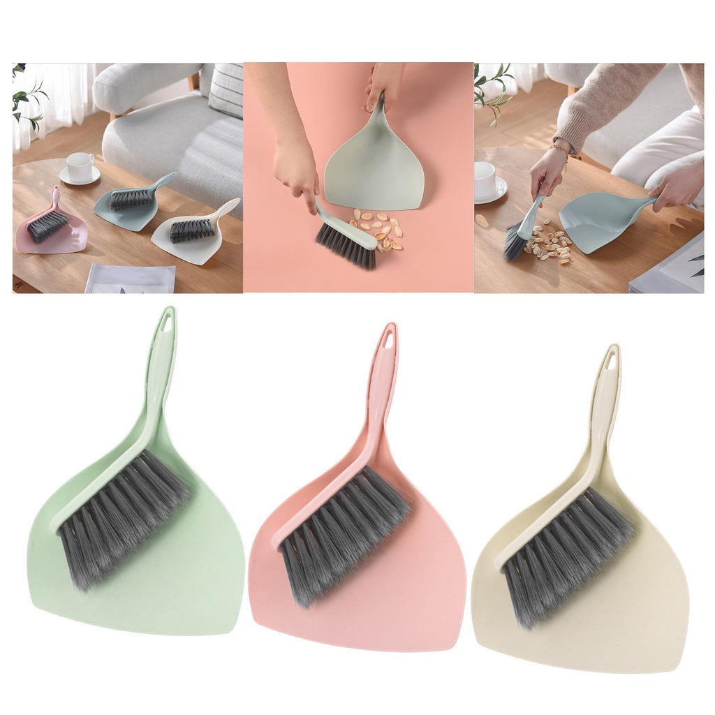 Maxbell Mini Dustpan and Brush Set Hanging Hole Design Household for Cabinets Office Green