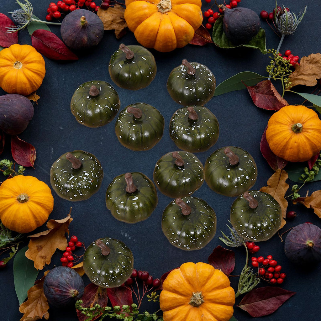 Maxbell Mini Pumpkins Lifelike Harvest Pumpkins for Halloween Holiday Decoration Dark Green
