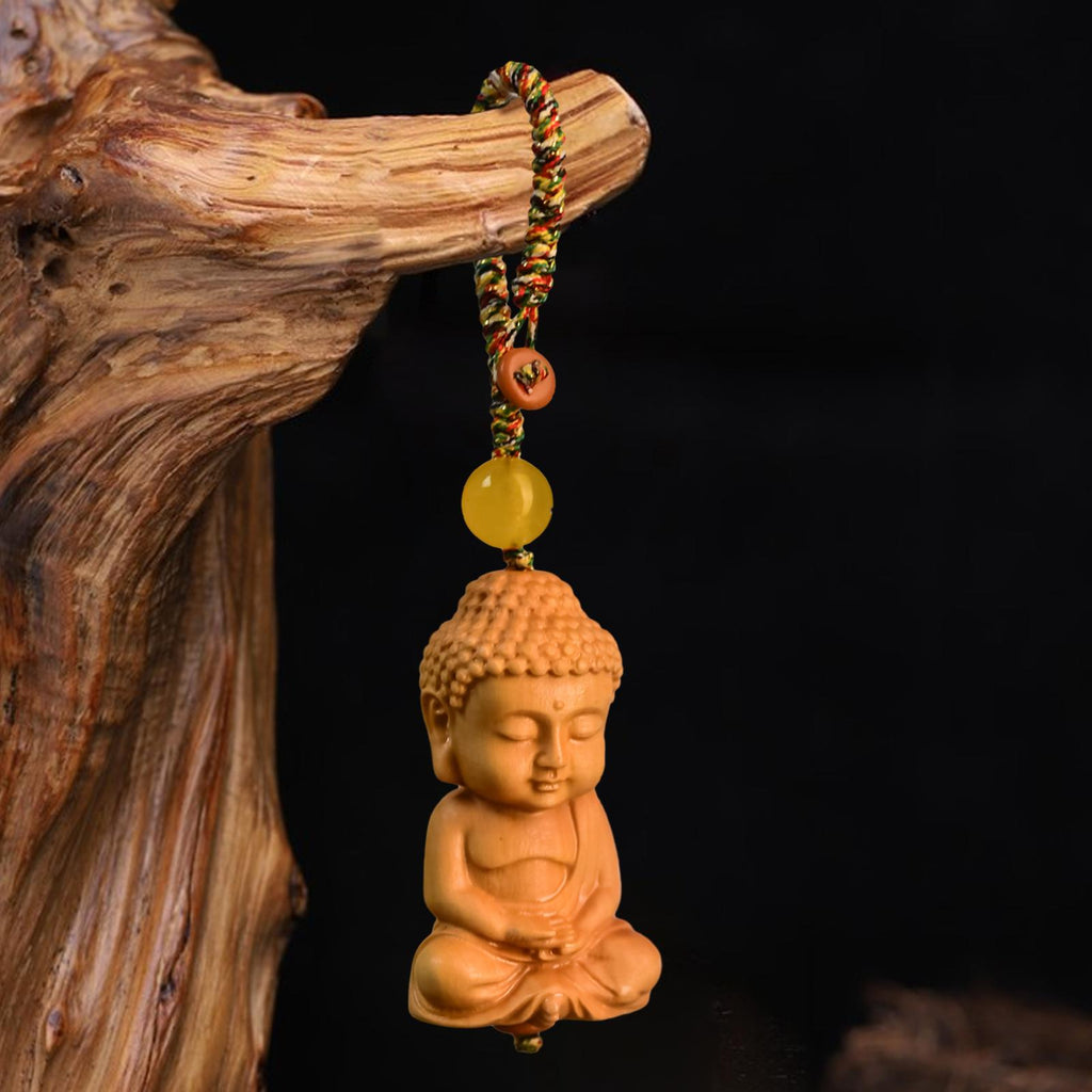 Maxbell Mini Wood Buddha Key Chain Lucky Pendant Accessory Feng Shui Sculpture Craft