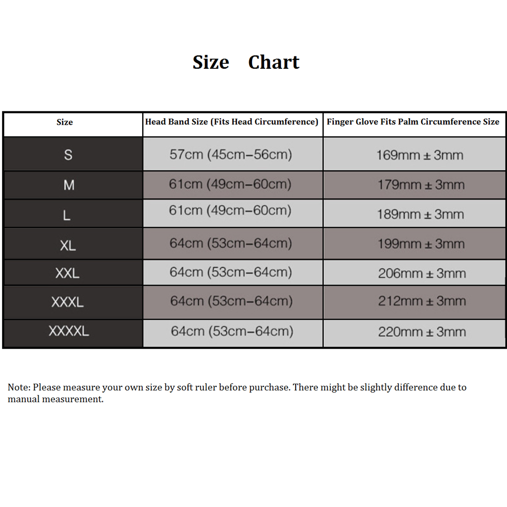 Head Band and Finger Glove Size: S, M, L, XL, 2XL, 3XL, 4XL for you choose