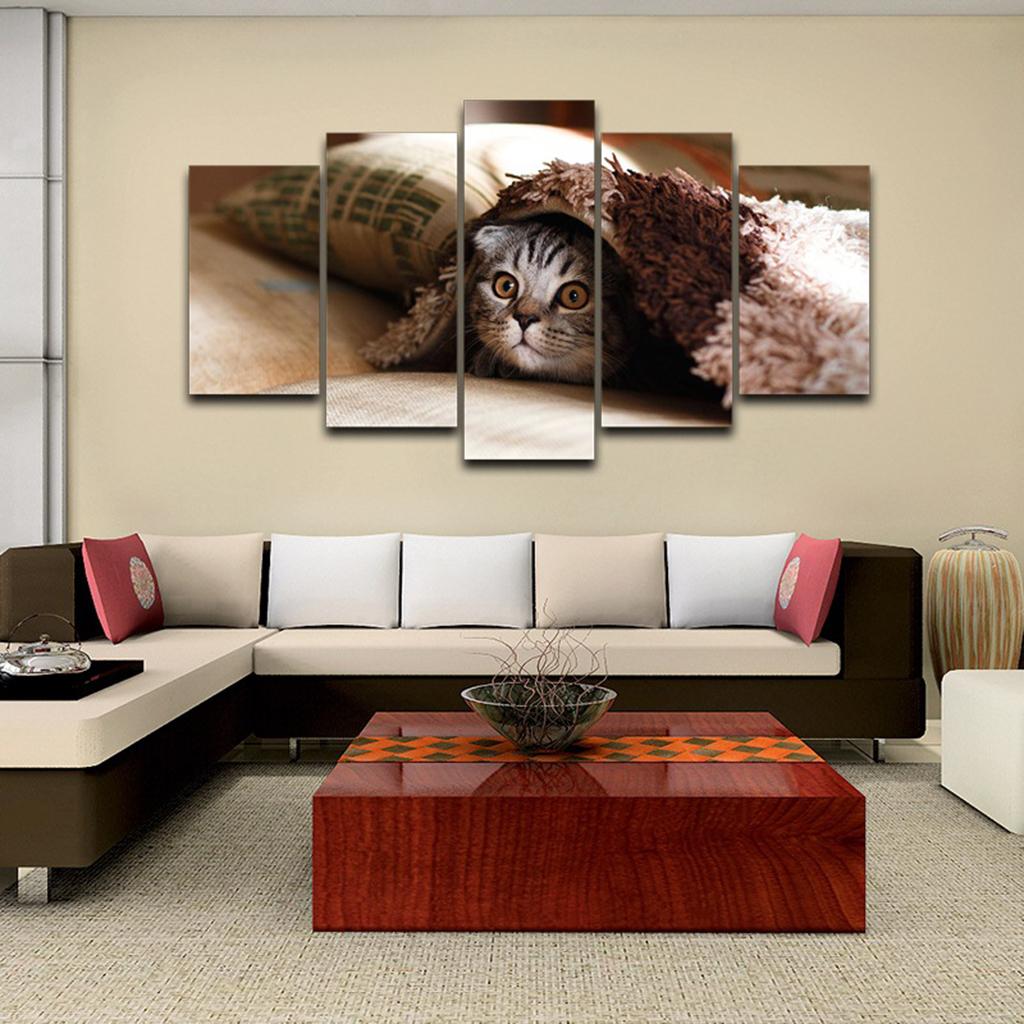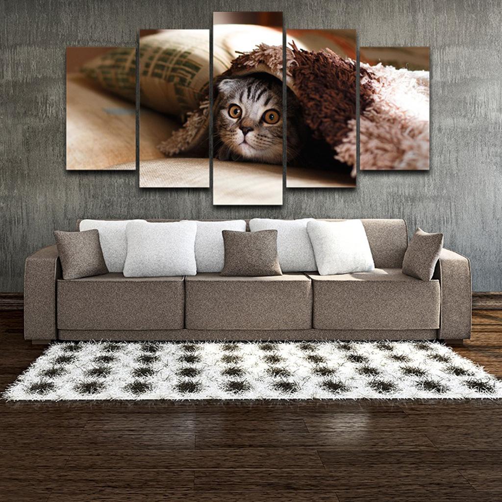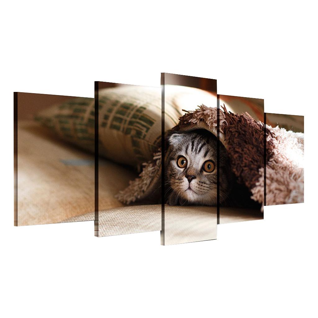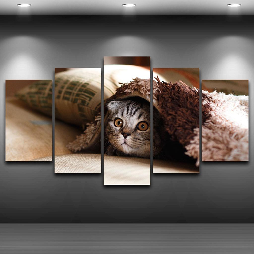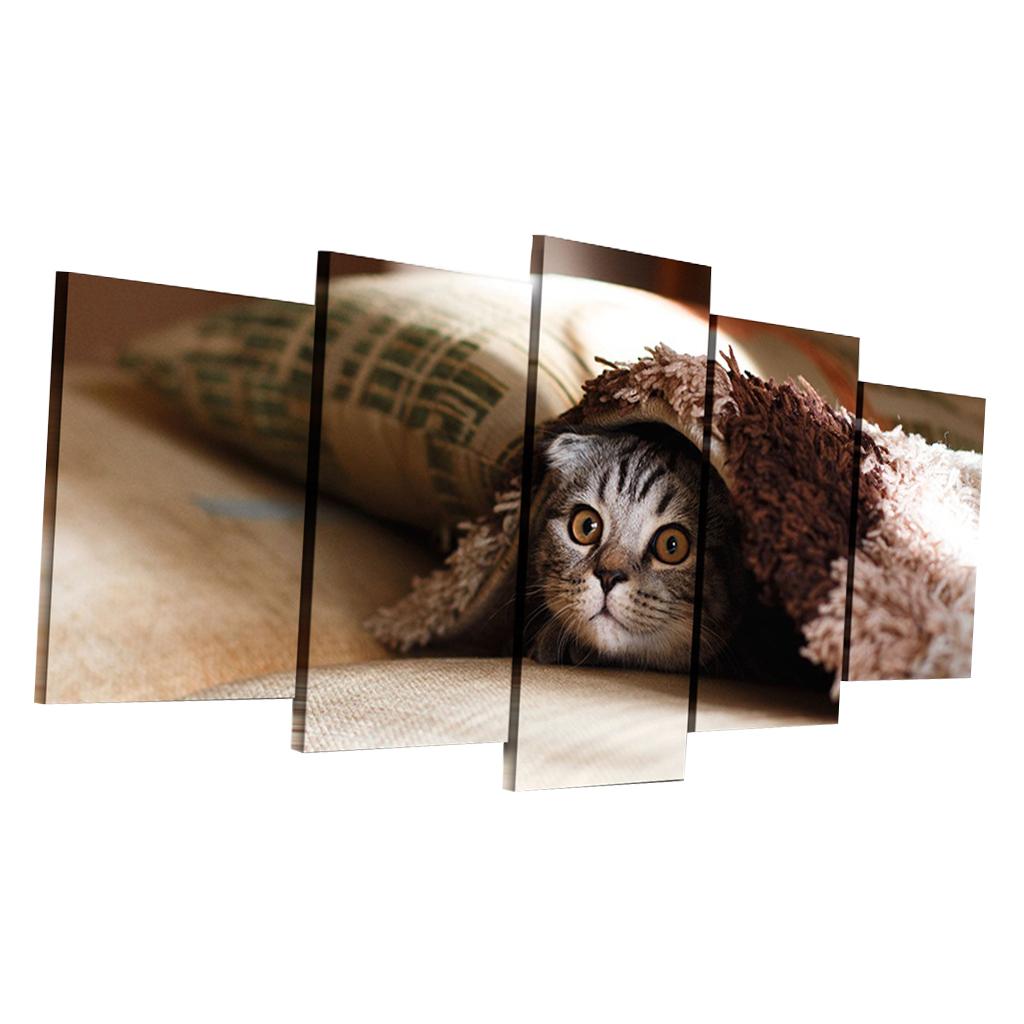 Max Modern 5 Panels Paintings on Canvas Wall Art Landscape Pet Cat