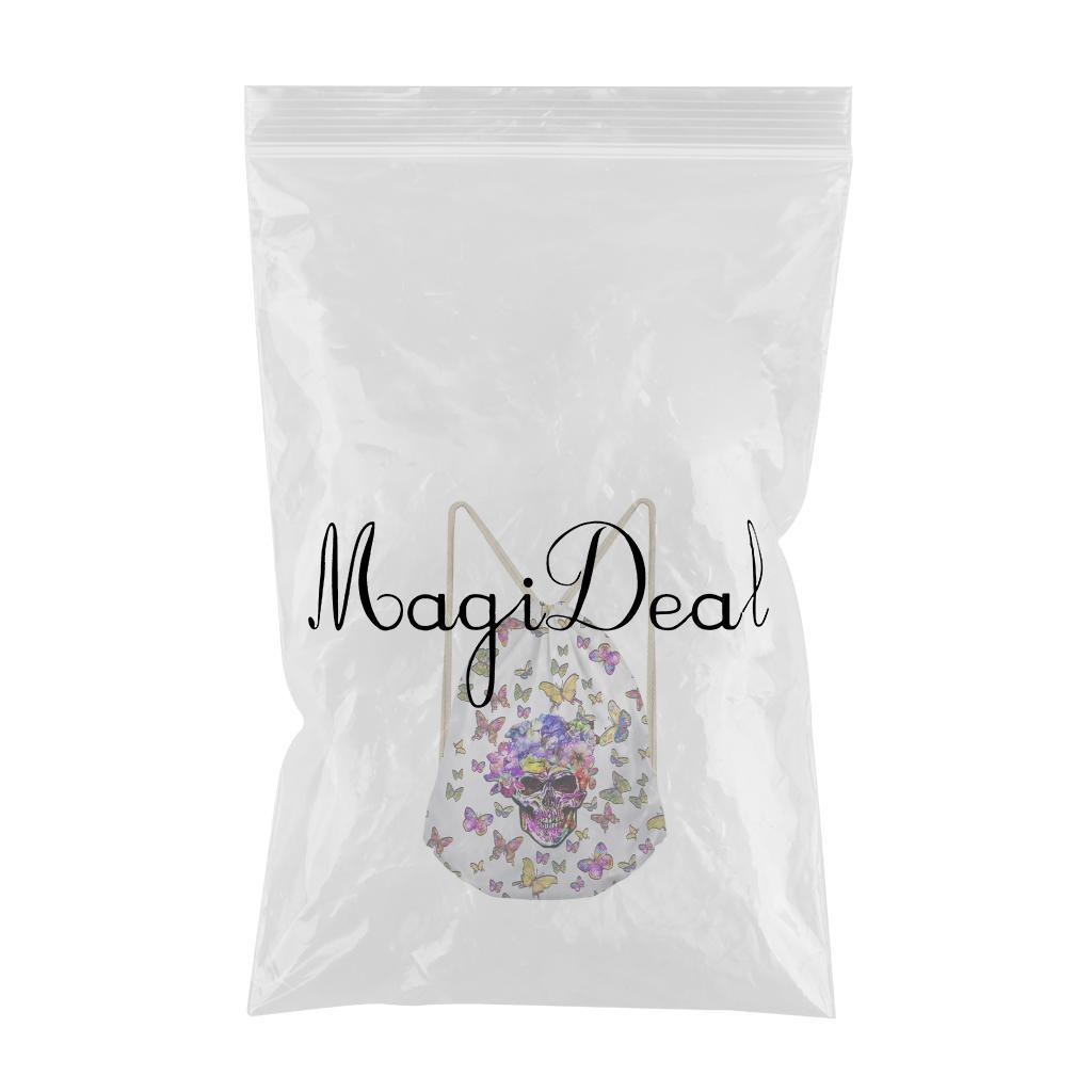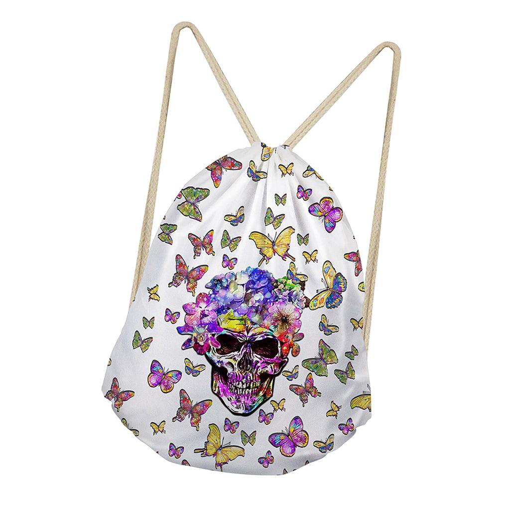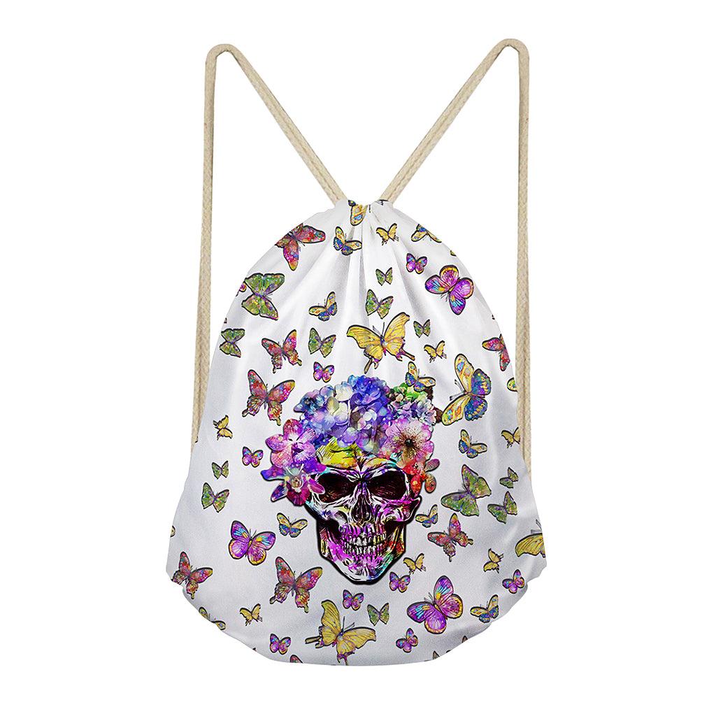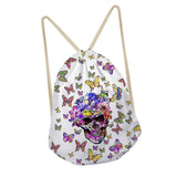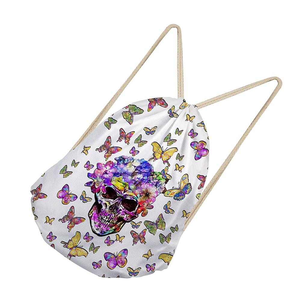 Maxbell Multi-Function Drawstring Bag Storge Bag Skull Gym Travel Backpack Butterfly White