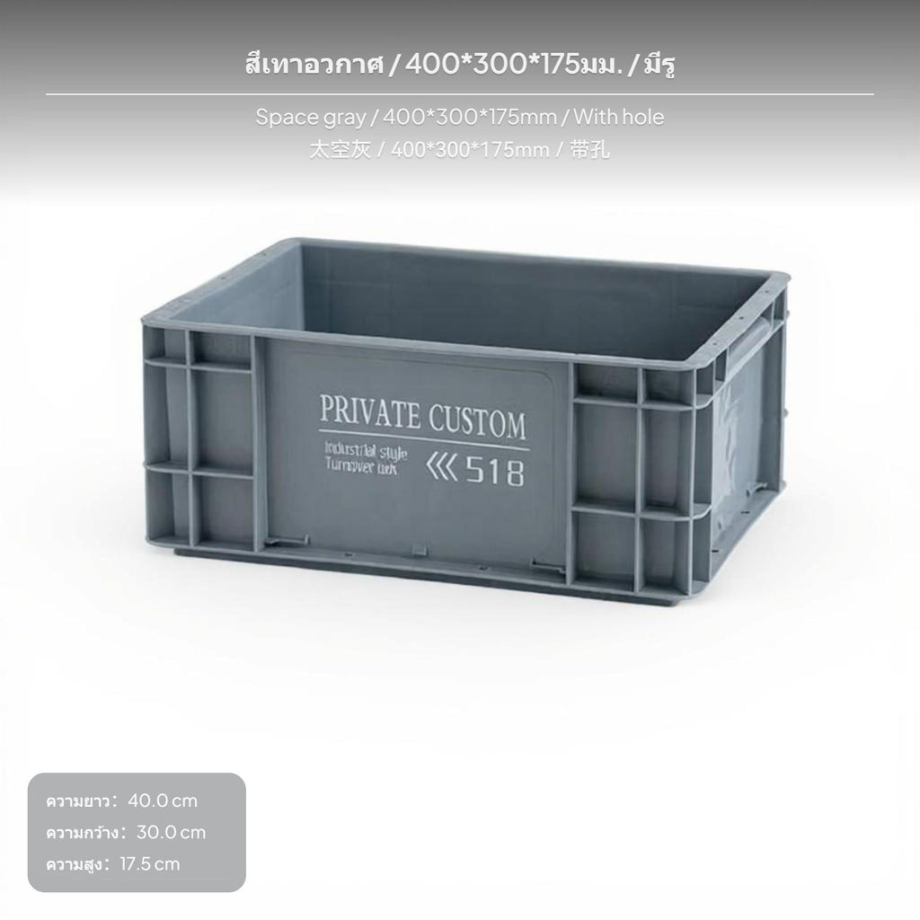 Multi-Size commercial Storage Bin, Plastic Perforated movement Box, PP Organizer for Home & Office Gray 400x300x175