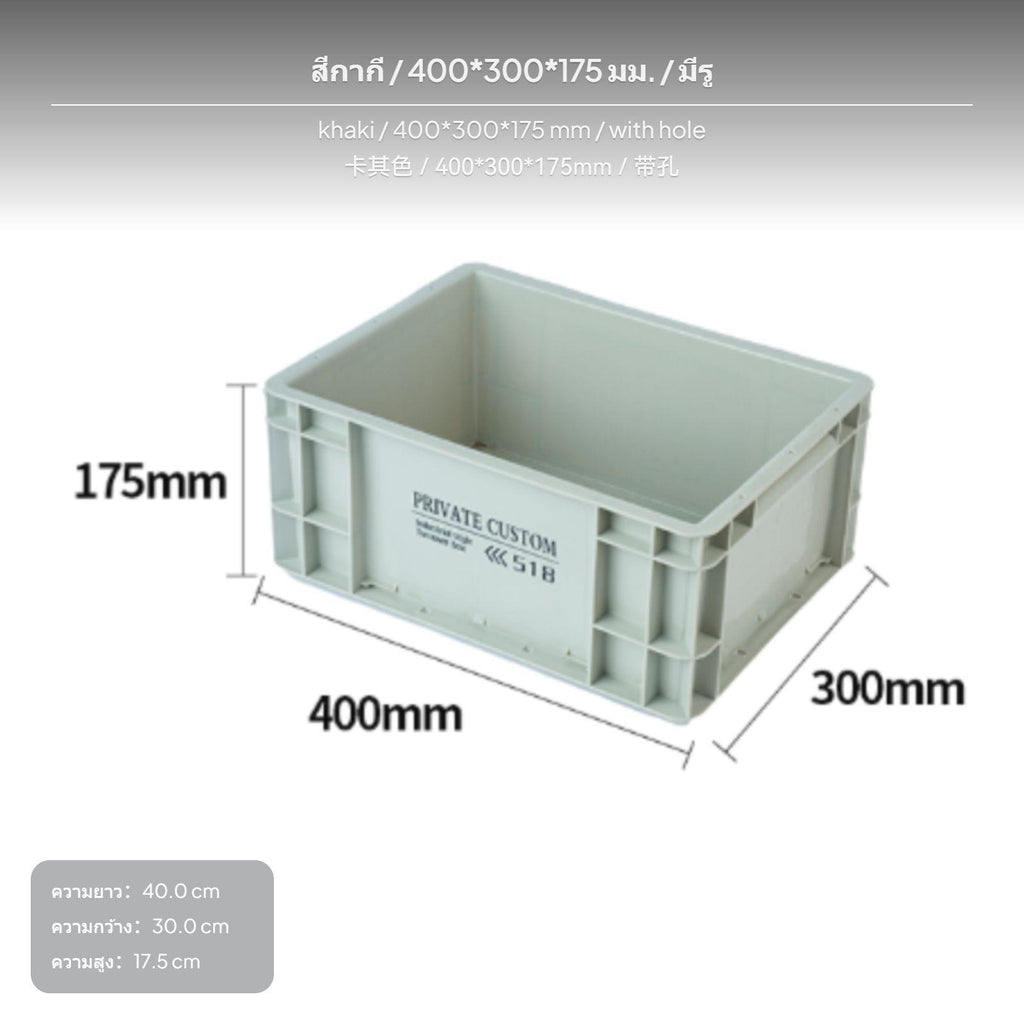 Multi-Size commercial Storage Bin, Plastic Perforated movement Box, PP Organizer for Home & Office Khaki 400x300x175