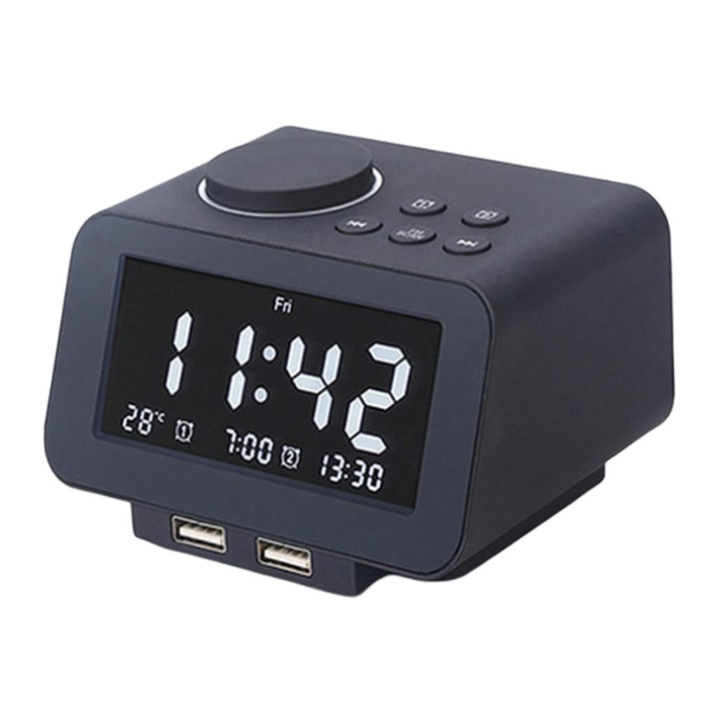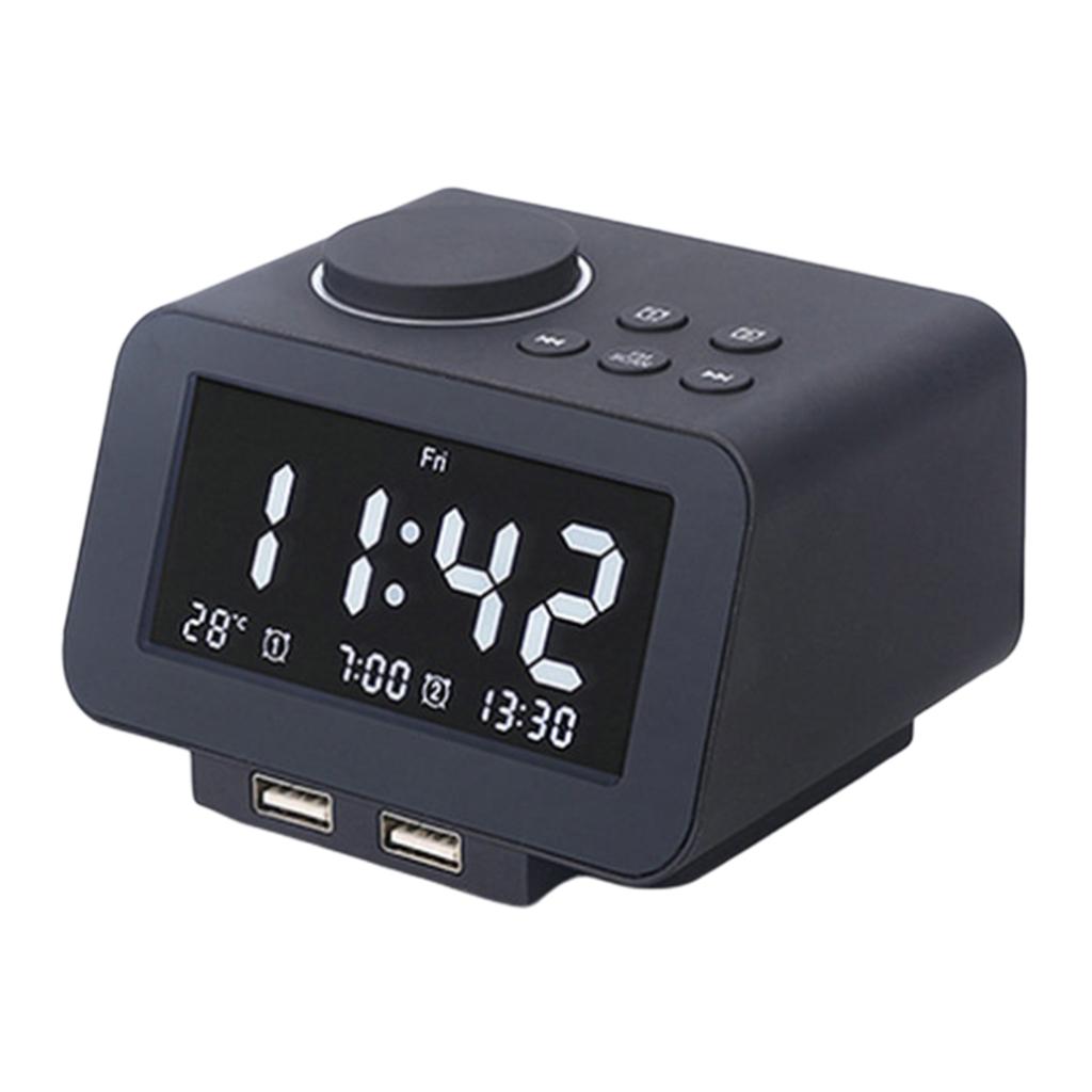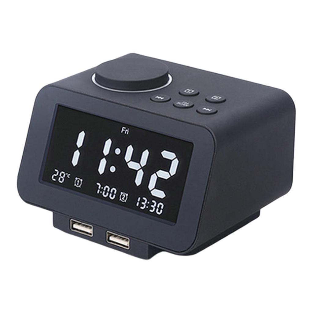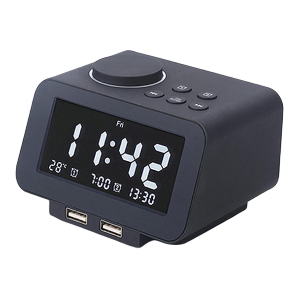 Maxbell Multifunctional Digital Alarm Clock USB Hotel Radio Clock-UK Black