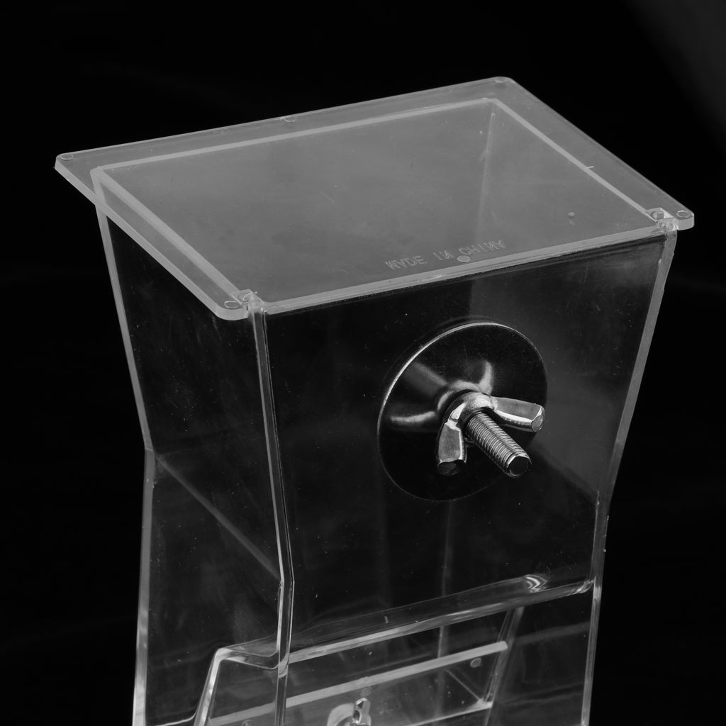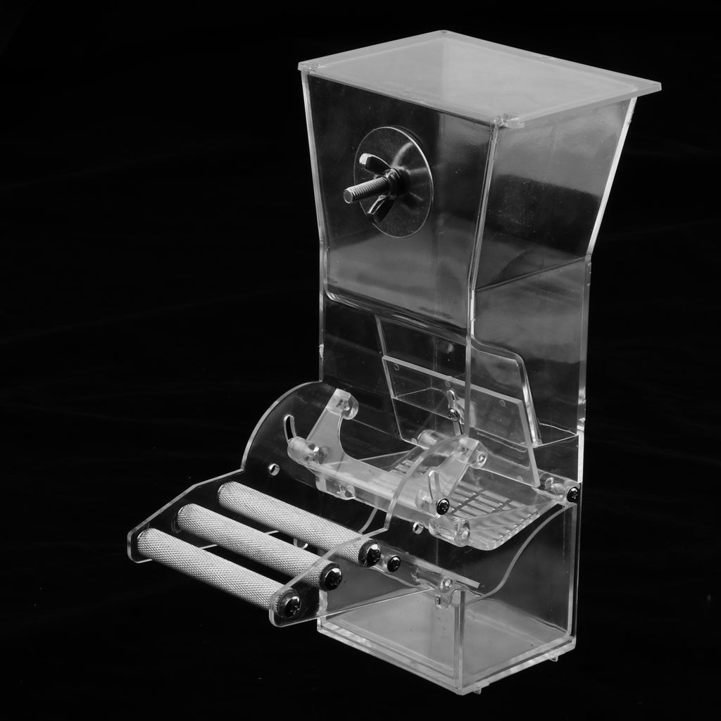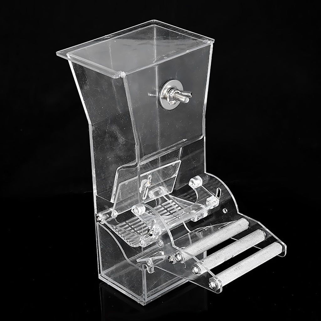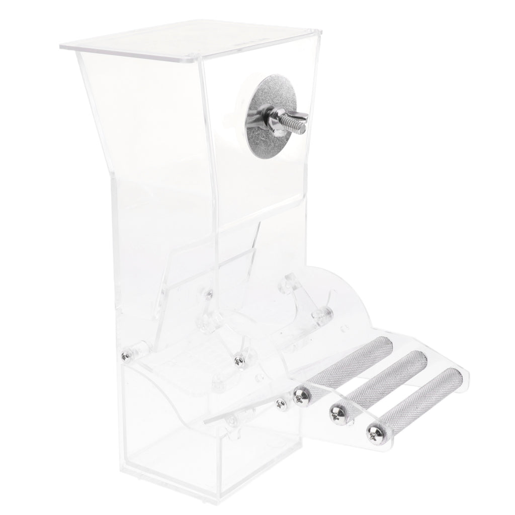 Easy to fix to bird's cage use one screw and one small arcylic piece only! It comes with clear acrylic bird perch that maks bird comfortable stands during food time.