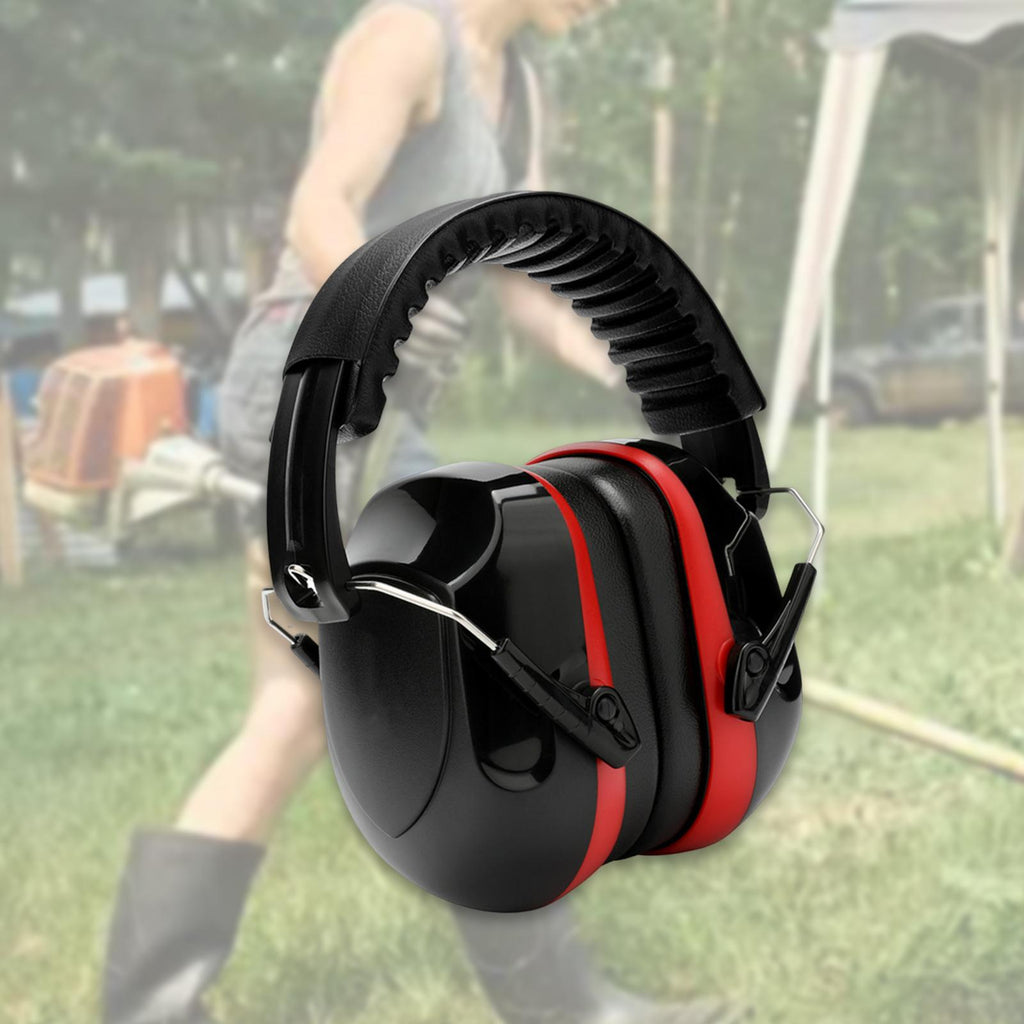 Maxbell Noise Reduction Earmuff Adjustable for Lawn Mowing Workshop Construction Red