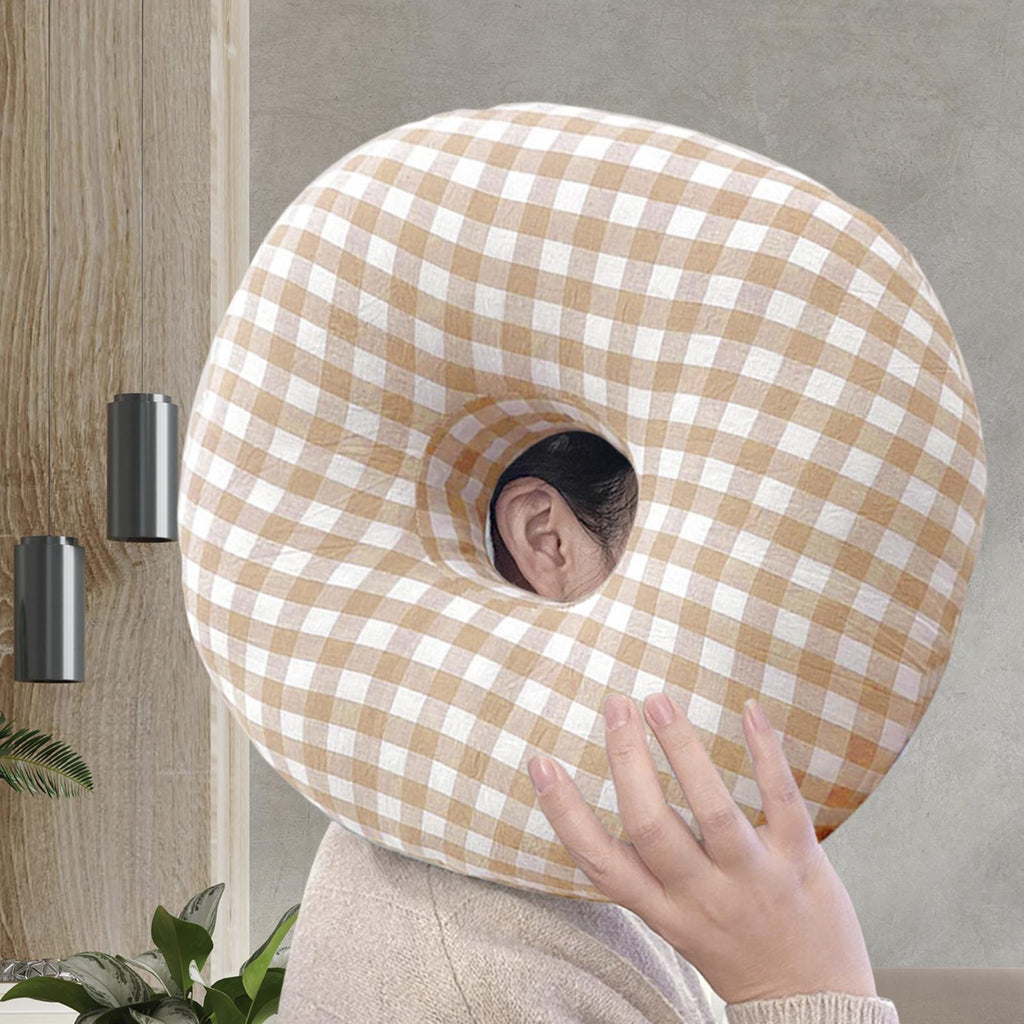 Maxbell O Shaped Ear Piercing Pillow with A Hole Soft for Side Sleepers Relaxation Orange Plaid