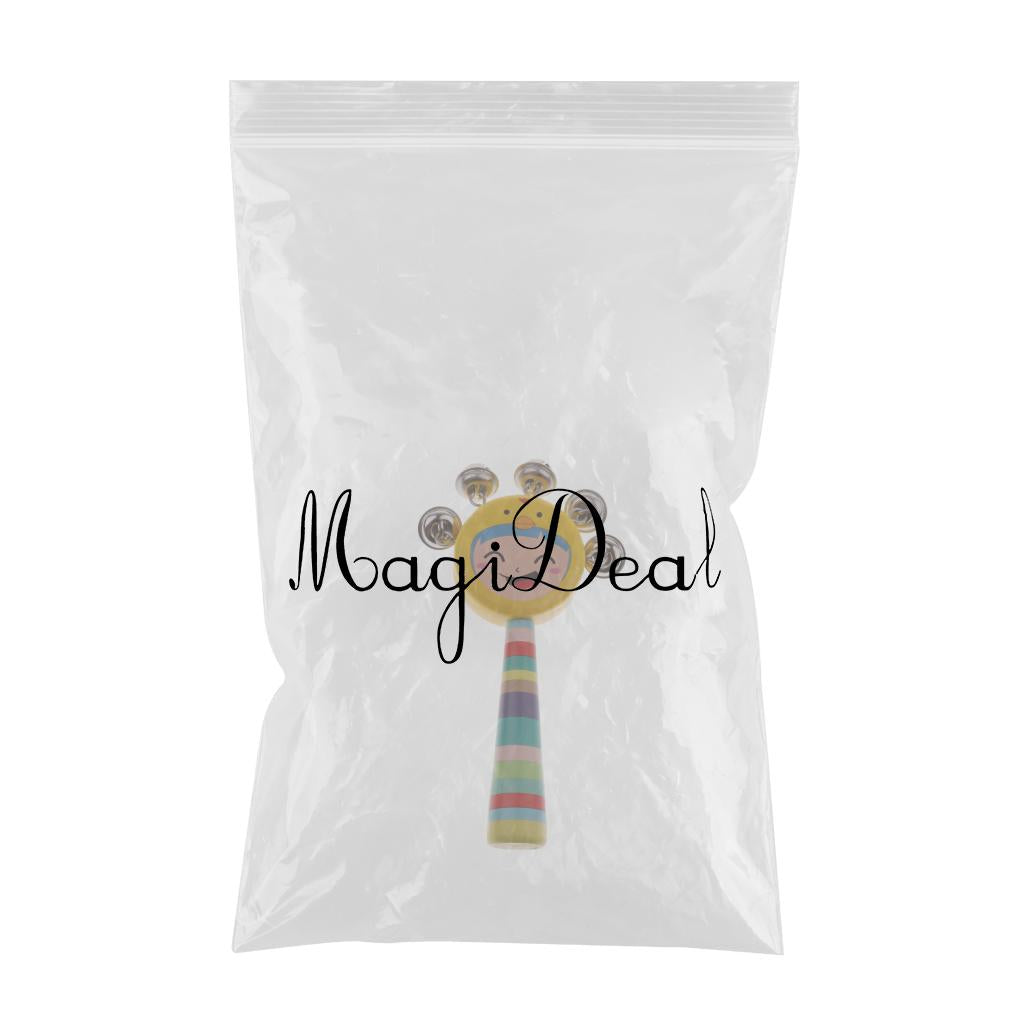 Max Orff Instrument Cute Wood Hand Jingle Bell Rattle Drum Kids Sound Toy Yellow